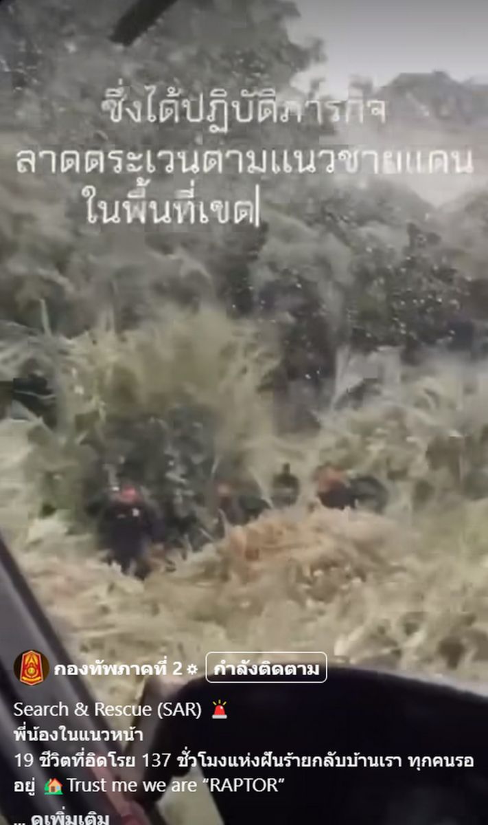 30 กรกฎาคม 2568 เพจเฟซบุ๊ก กองทัพภาคที่ 2 โพสต์คลิปพร้อมระบุว่า พี่น้องในแนวหน้า 19 ชีวิตที่อิดโรย 137 ชั่วโมงแห่งฝันร้าย กลับบ้านเรา ทุกคนรออยู่ Trust me we are “RAPTOR” เปิดภารกิจลับแห่งความตาย 19 ทหารพราน 2305 นักรบชุดดำ กองทัพภาคที่ 2