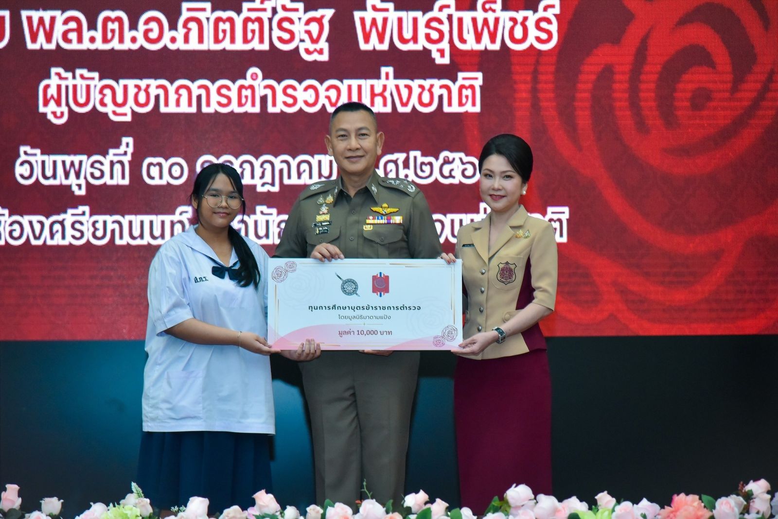 วันนี้ (30 กรกฎาคม 2568) เวลา 10.00 น. พล.ต.อ.กิตติ์รัฐ พันธุ์เพ็ชร์ ผู้บัญชาการตำรวจแห่งชาติ เป็นประธานพิธีมอบทุนการศึกษาให้กับบุตรข้าราชการตำรวจ ของสมาคมแม่บ้านตำรวจ ประจำปีพุทธศักราช 2568 โดยมี คุณกนกวรรณ พันธุ์เพ็ชร์ นายกสมาคมแม่บ้านตำรวจ , พล.ต.อ.กรไชย คล้ายคลึง รองผู้บัญชาการตำรวจแห่งชาติ , พล.ต.ท.สำราญ นวลมา ผู้ช่วยผู้บัญชาการตำรวจแห่งชาติ , พล.ต.ท.อิทธิพล อัจฉริยะประดิษฐ์ รองจเรตำรวจแห่งชาติ , พล.ต.ท.อิทธิพล อิทธิสารรณชัย ผู้ช่วยผู้บัญชาการตำรวจแห่งชาติ และ คุณศิริเพ็ญ ตั้งทวีสุโข นวลมา กรรมการบริหารสมาคแม่บ้านตำรวจ ในฐานะที่ปรึกษาโครงการทุนการศึกษาบุตรข้าราชการตำรวจ ร่วมพิธี ณ ห้องศรียานนท์ ชั้น 2 อาคาร 1 สำนักงานตำรวจแห่งชาติ