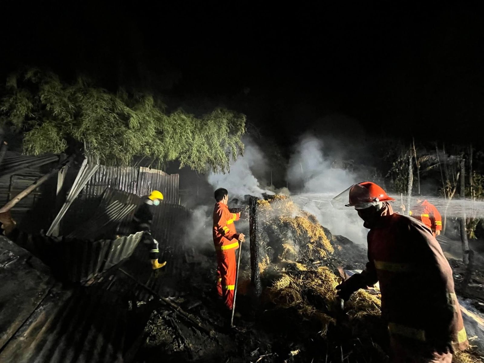 เมื่อถึงที่เกิดเหตุ พบว่าเพลิงกำลังลุกไหม้กองฟาง ที่อยู่ติดกับบ้านเรือนประชาชน ทีมเจ้าหน้าที่ชุดผจญเพลิงกู้ภัยประจิม เข้าดำเนินการใช้หัวฉีดน้ำ 1 หัว เข้าฉีดน้ำควบคุมเพลิงร่วมกับเจ้าหน้าที่ดับเพลิง อบต.หนองแสง ใช้เวลา 1 ชั่วโมง จึงสามารถควบคุมเพลิงไว้ได้ ขณะเกิดเหตุ ไม่พบผู้บาดเจ็บหรือเสียชีวิต