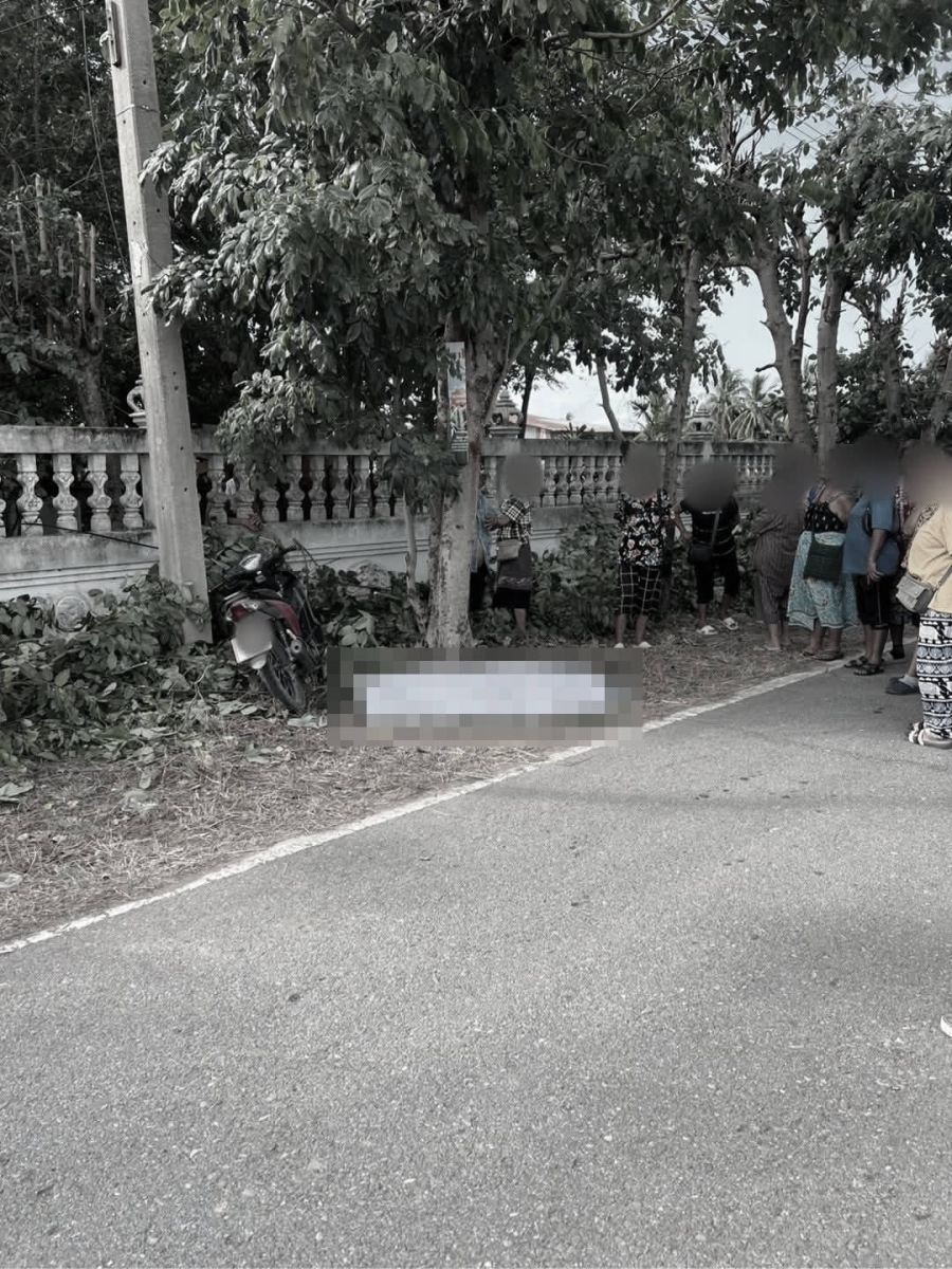 อุบัติเหตุ รถจักรยานยนต์ชนกับรั้วกำแพงริมถนน ใกล้กันพบร่างคุณป้า 61 ปีเสียชีวิต จ.กาญจนบุรี