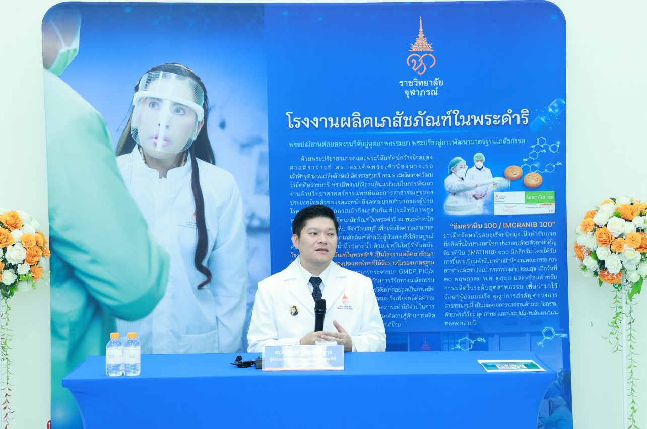โรงงานผลิตเภสัชภัณฑ์ในพระดําริ ราชวิทยาลัยจุฬาภรณ์ เป็นโรงงานผลิตยารักษาโรคมะเร็งแห่งแรกของประเทศไทย มีพันธกิจในการผลิตเภสัชภัณฑ์ประสิทธิภาพสูงเพื่อสนับสนุนการรักษาผู้ป่วยมะเร็ง ช่วยให้ผู้ป่วยโรคมะเร็งได้เข้าถึงการรักษาประสิทธิภาพสูงได้อย่างทั่วถึงและเท่าเทียม จึงก้าวตามรอยพระบาท และพระปณิธานอันแรงกล้าขององค์ประธานราชวิทยาลัยจุฬาภรณ์ที่ทรงแสวงหาทุกโอกาสที่จะเป็นประโยชน์ต่อการรักษาผู้ป่วยมะเร็งด้วยพระนโยบายการดูแลผู้ป่วยในทุกมิติ ซึ่งยารักษาโรคมะเร็งมุ่งเป้าชนิดเม็ดเป็นหนึ่งในนวัตกรรมพลิกโฉมการรักษาโรคมะเร็ง นอกจากจะมีประสิทธิภาพสูง ยังสะดวกต่อการใช้งาน ช่วยให้ผู้ป่วยและผู้ดูแลมีคุณภาพชีวิตดีขึ้น จึงเป็นตัวเลือกที่โดดเด่น เหมาะสมที่จะนำมาเป็นต้นแบบนำร่องการพัฒนาอุตสาหกรรมยารักษาโรคมะเร็งของประเทศ