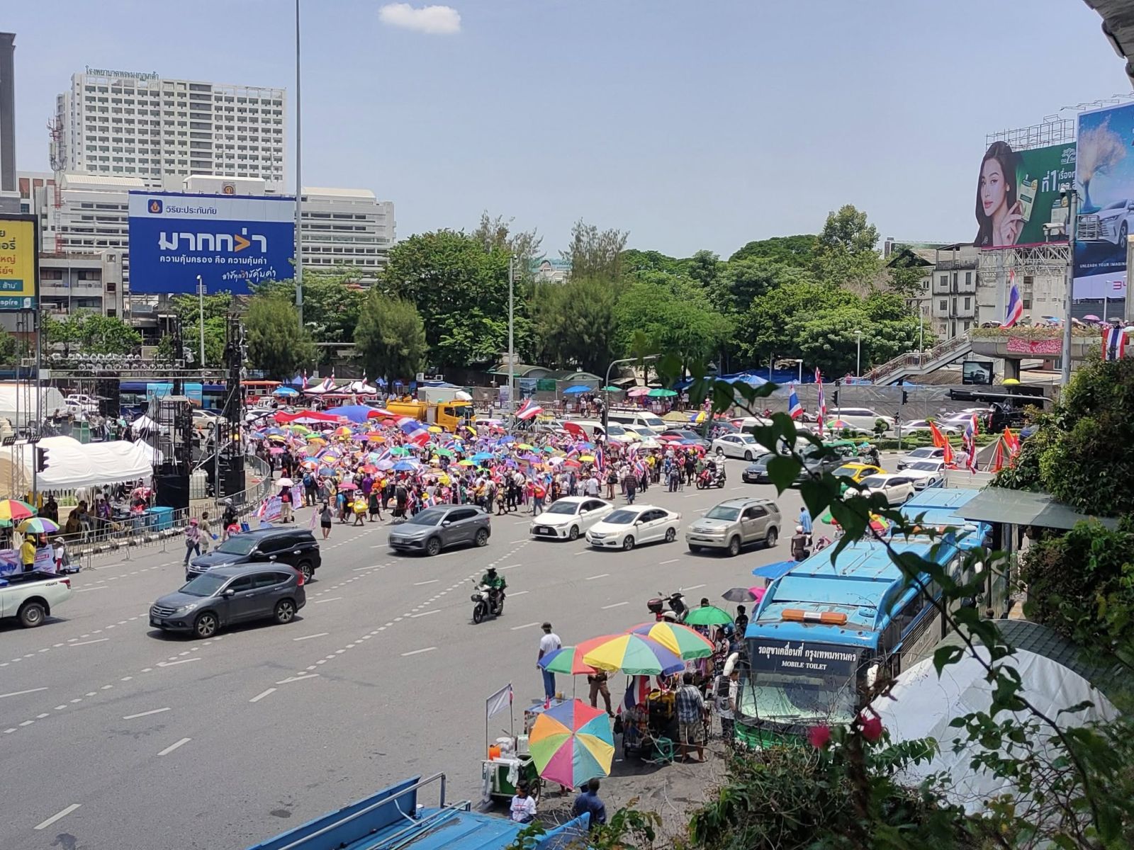 ตั้งแต่ช่วงเวลาประมาณ 10.00 น. เริ่มมีประชาชนบางส่วนทยอยเข้าจับจองพื้นที่ พร้อมชูธงชาติเป็นการแสดงออกเชิงสัญลักษณ์ ท่ามกลางอากาศที่ร้อนจัด และคาดว่าจะมีประชาชนเข้าร่วมชุมนุมราว 10,000 คน