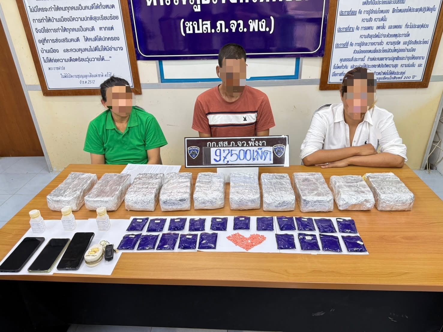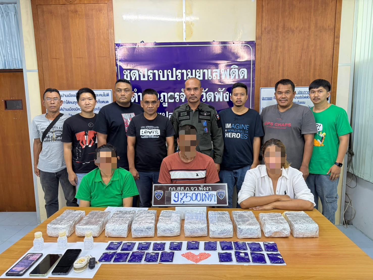 ตำรวจพังงา รวบ 3 ผู้ต้องหาเครือข่ายยาเสพติด พร้อมของกลางยาบ้าเกือบแสนเม็ด