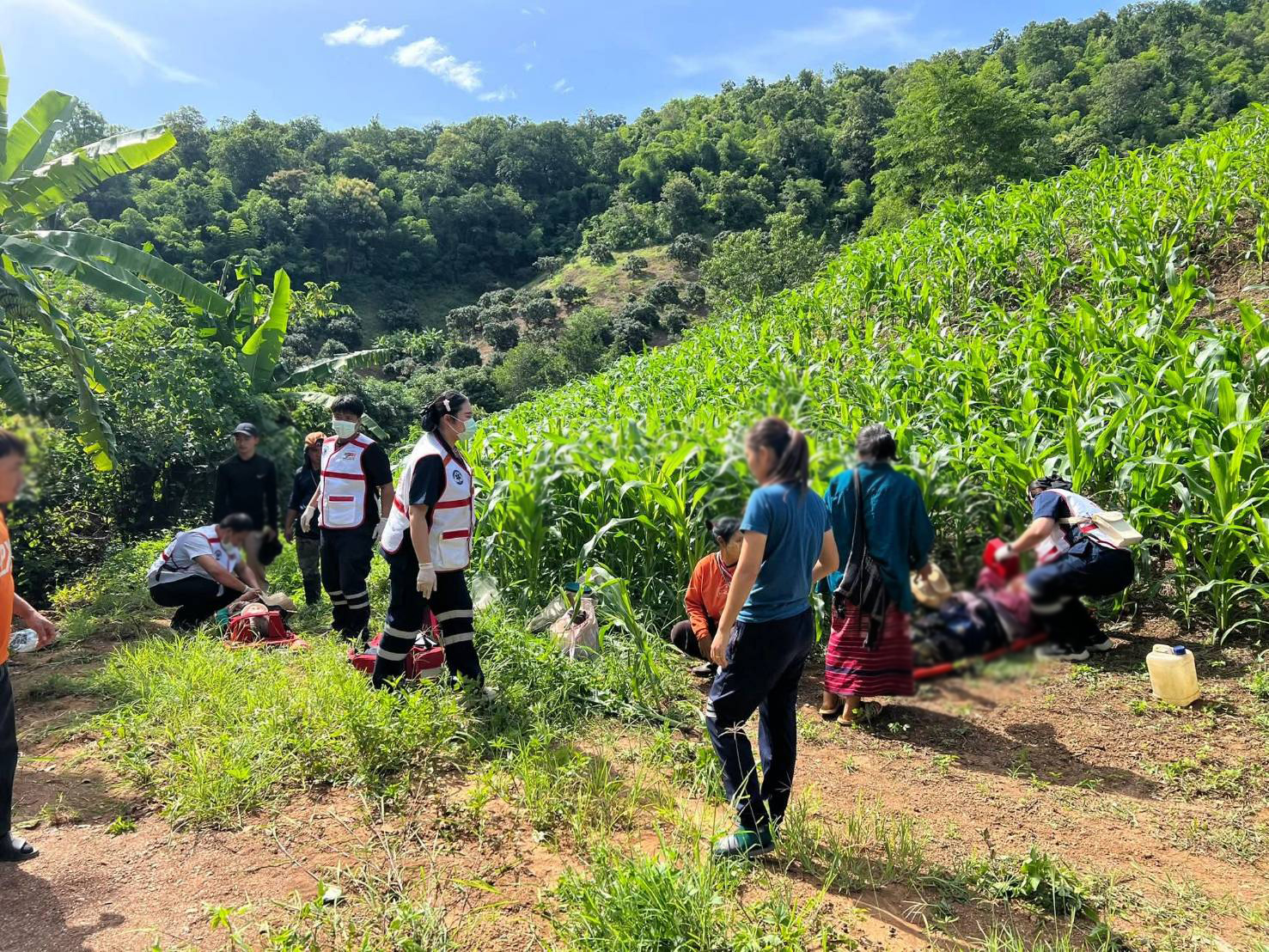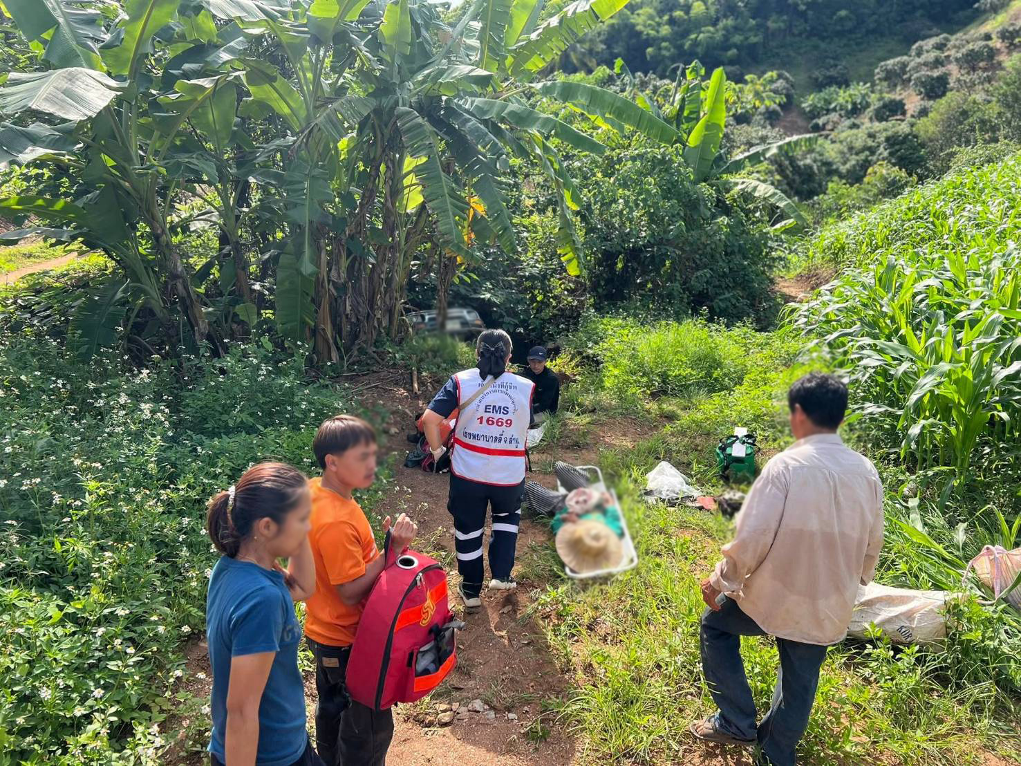 วันที่ 5 สิงหาคม 2568 มูลนิธิพุทไธสวรรย์จังหวัดลำพูน รับแจ้งว่ามีอุบัติเหตุ รถกระบะเสียหลักตกเขา และมีผู้บาดเจ็บหลายราย บนถนนภายในสวนบ้านป่าไผ่ ต.ป่าไผ่ อ.ลี้ จ.ลำพูน