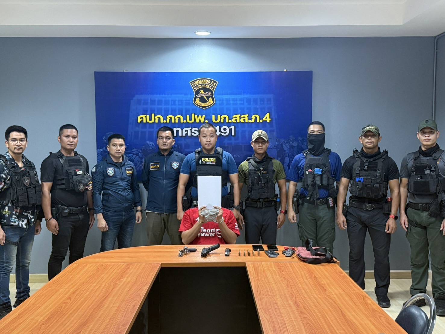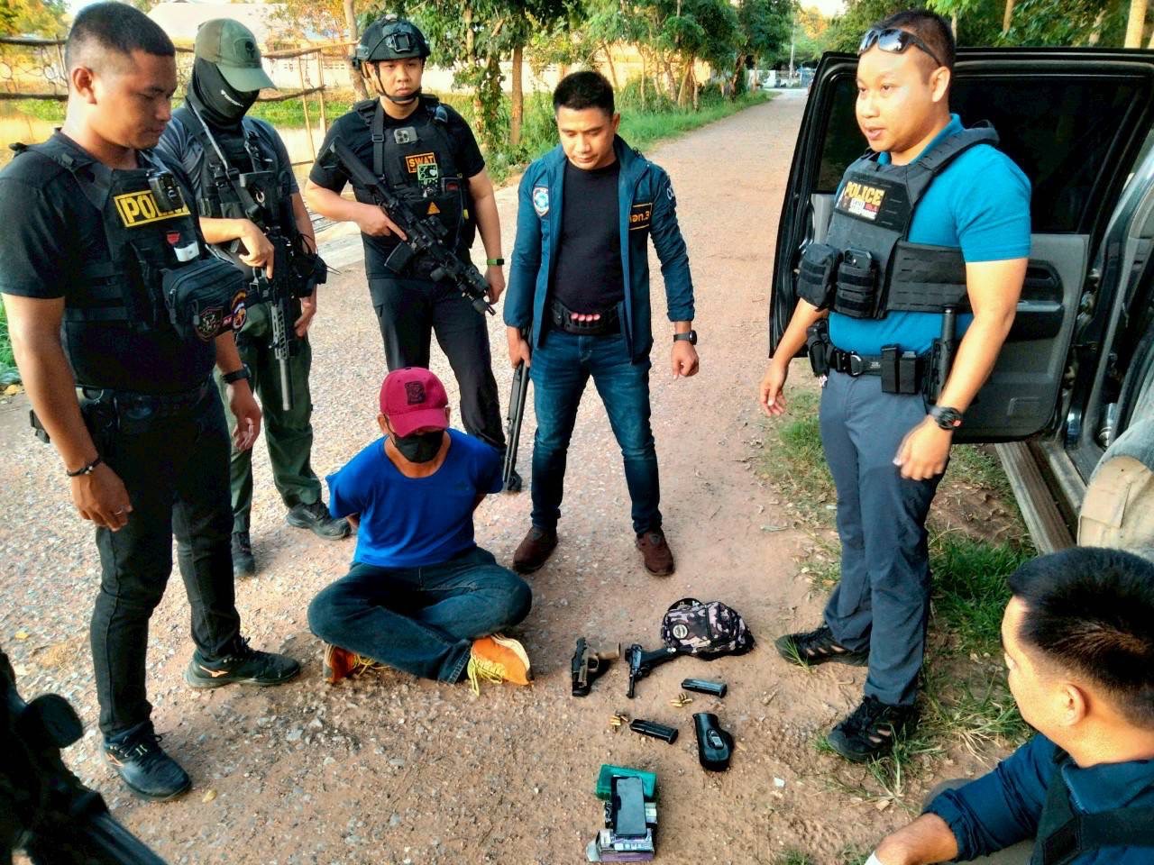 โดยจับกุมได้หลังแฝงตัวเข้าในกลุ่มไลน์เกี่ยวกับการซื้อขายอาวุธปืนผิดกฎหมาย เมื่อตรวจสอบพบ จึงได้พยายามติดต่อล่อซื้อปืนจากสมาชิกในกลุ่ม จนสามารถจับกุมได้ 2 ราย