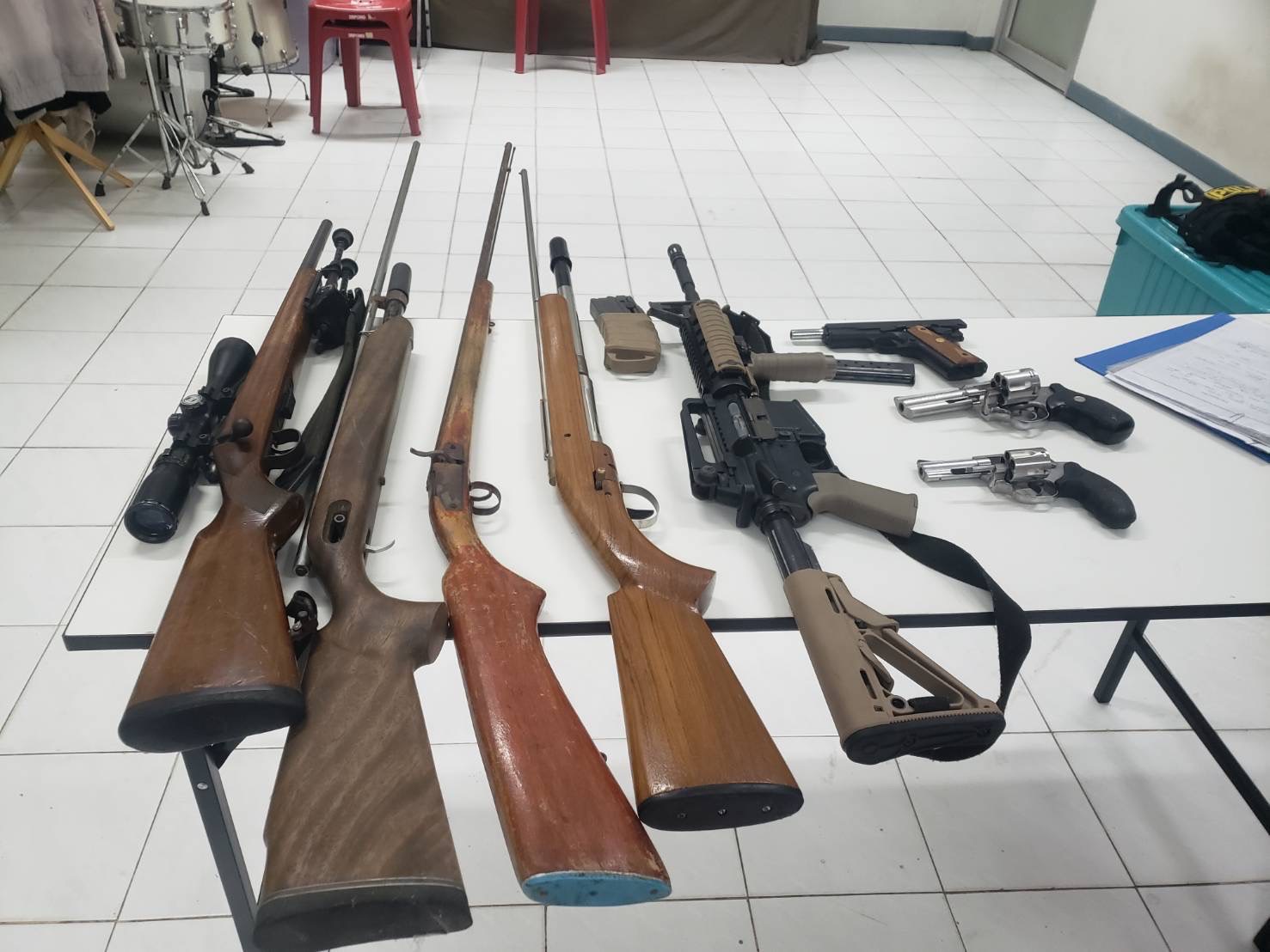 1.อาวุธปืนพกสั้นกึ่งอัตโนมัติ 2 กระบอก เบื้องต้น ผู้ต้องหายอมรับว่า อาวุธปืนของกลางดังกล่าวเป็นของตนจริง โดยซื้อมาจากชายไทยไม่ทราบชื่อ ที่เคยรู้จักกันทางโซเชียลมีเดีย แต่ตอนนี้ไม่สามารถติดต่อได้แล้ว เจ้าหน้าที่จึงแจ้งข้อหา “มีอาวุธปืนและเครื่องกระสุนปืนในครอบครองโดยไม่ได้รับอนุญาต” นำตัวส่งดำเนินคดีตามกฎหมาย
