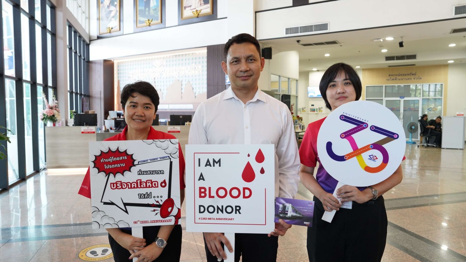 ทั้งนี้ รฟม. ได้มอบบัตรโดยสารรถไฟฟ้า MRT ให้กับผู้บริจาคโลหิต เนื่องในโอกาสพิเศษวันคล้ายวันก่อตั้ง รฟม. ครบรอบ 33 ปี อีกด้วย ซึ่งถือเป็นโอกาสอันดีในการร่วมรณรงค์บริจาคโลหิตให้แก่สภากาชาดไทย เพื่อนำไปใช้ประโยชน์ในการรักษาที่จำเป็นได้โดยสะดวก โดยที่ผ่านมา รฟม. มีนโยบายในการดำเนินกิจกรรมเพื่อสังคม ส่งเสริมให้พนักงานมีจิตสาธารณะ สนับสนุนช่วยเหลือสังคม ชุมชนและประชาชนอย่างต่อเนื่อง ติดตามข้อมูลข่าวสาร รฟม. เพิ่มเติมได้ที่เว็บไซต์ รฟม. www.mrta.co.th และเฟซบุ๊กแฟนเพจการรถไฟฟ้าขนส่งมวลชนแห่งประเทศไทย หรือ Call Center รฟม. โทรศัพท์ 0 2716 4044 “รฟม. ร่วมยกระดับเมืองด้วยโครงข่ายรถไฟฟ้าขนส่งมวลชนและนวัตกรรมเพื่ออนาคตที่ยั่งยืน”