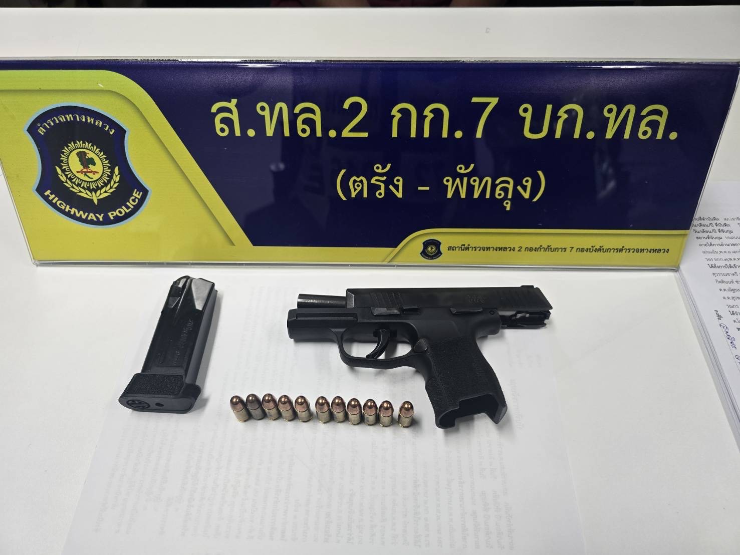 ตำรวจสอบสวนกลาง ตั้งด่านสกัดเข้ม บนถนนเพชรเกษม รวบหนุ่มพกปืน พร้อมกระสุนปืน จ.พัทลุง