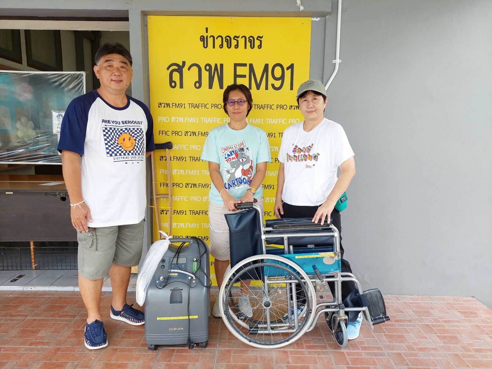 ที่สถานีวิทยุ สวพ.FM91 ในนาม คุณแม่ อุไรพร พรช่วยกาญจนา ร่วมมอบอุปกรณ์ช่วยชีวิตเพื่อผู้ป่วยยากไร้ ได้แก่ เครื่องผลิตออกซิเจน ไม้ค้ำยัน รถเข็นวีลแชร์ และผ้าอ้อม 1 ถุง