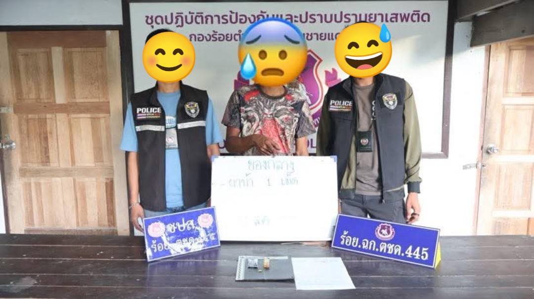 ส่วนเพื่อนอีกคน ทราบชื่อ นายขอ (นามสมมุติ) อายุ 24 ปี มียาบ้า 1 เม็ด กำอยู่ในมือข้างขวา เจ้าหน้าที่จึงนำตัวทั้งสองมาตรวจปัสสาวะ ทำบันทึกจับกุม ที่กองร้อย ตชด.445