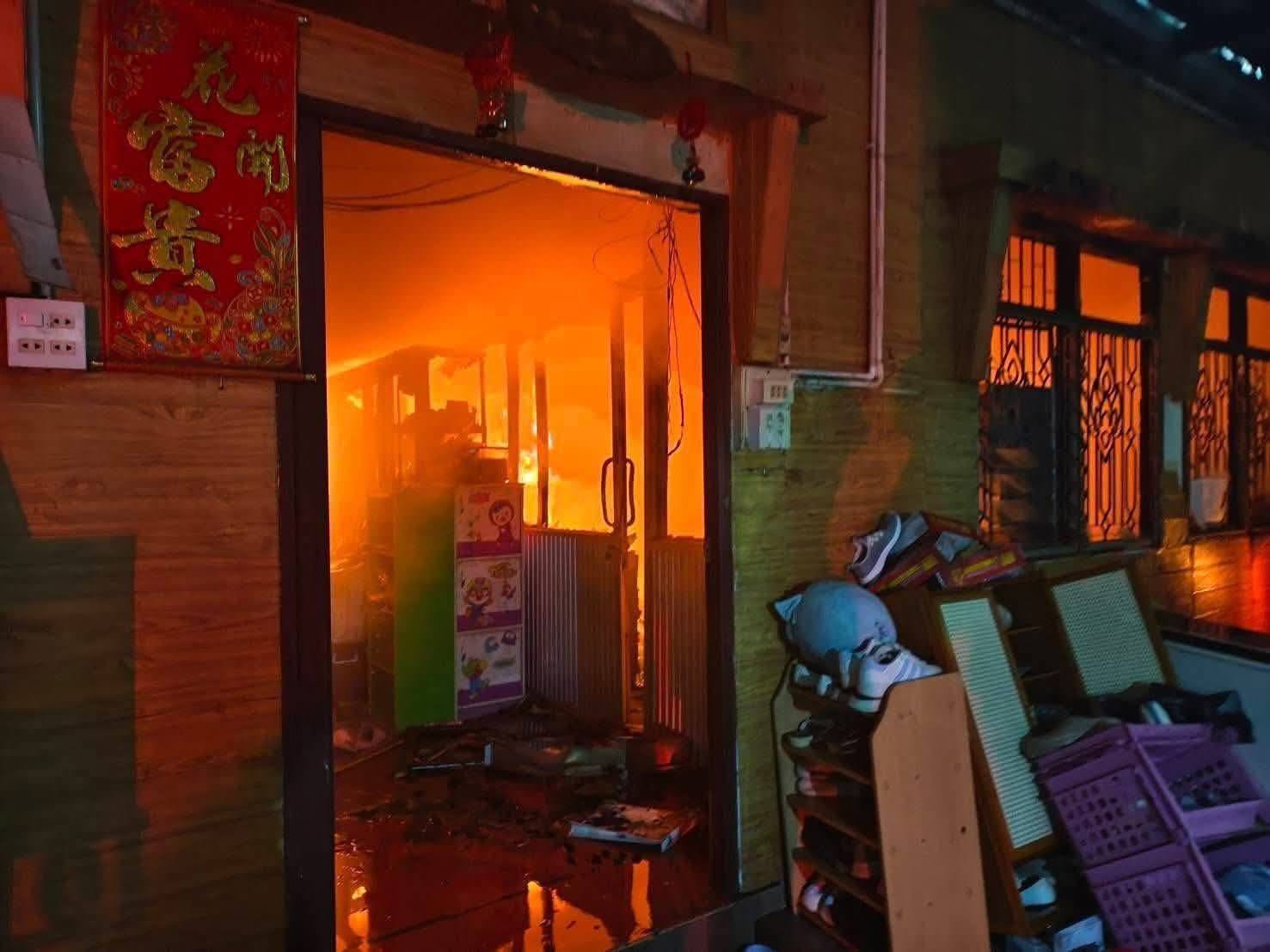 ส่วนบริเวณที่เกิดเหตุเป็นบ้านพักผู้บริหารโรงเรียนซึ่งตั้งอยู่ด้านหลังสุด แต่ยังอยู่ภายในรั้วโรงเรียน มีลักษณะเป็นอาคารที่พัก 2 ชั้น โดยไฟได้โหมลุกไหม้จากชั้นล่างขึ้นไปยังชั้นบน ทางเจ้าหน้าที่ได้ใช้เวลาในการฉีดน้ำนานเกือบ 1 ชั่วโมง จึงทำให้เพลิงสงบลงได้ แต่ก็พบว่าเกิดความเสียหายเกือบทั้งหลัง ขณะที่เกิดเหตุ พบว่ามีผู้บาดเจ็บ 1 คน เป็นเจ้าหน้าที่ในโรงเรียนที่พยายามเข้าไปช่วยลูกสะใภ้และหลานชายเจ้าของบ้านพัก ทำให้ถูกแก้วบาดที่เท้าเล็กน้อย นำส่งโรงพยาบาลกระทุ่มแบน ส่วนลูกสะใภ้และหลานชายเจ้าของบ้านพักนั้น กระโดดหนีลงมาจากชั้นที่ 2 ของบ้านได้อย่างปลอดภัย มีบาดแผลรอยขีดข่วนเล็กน้อย