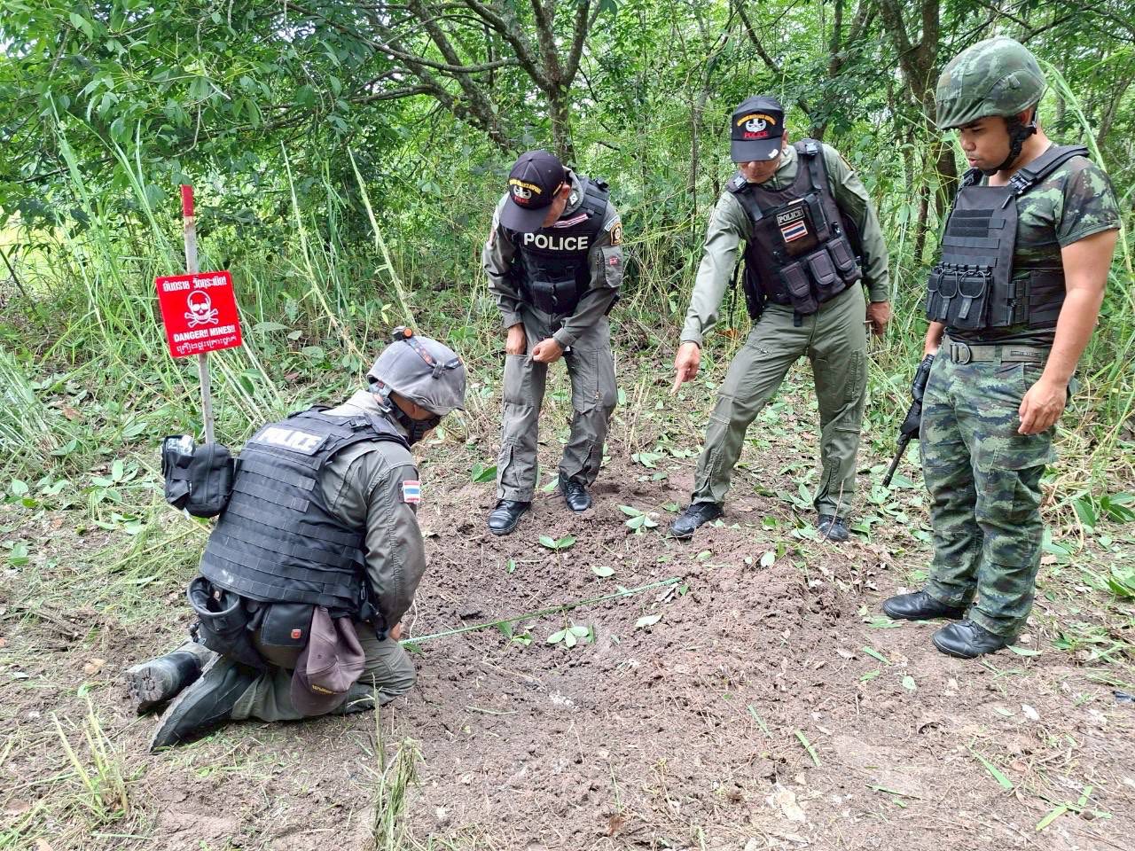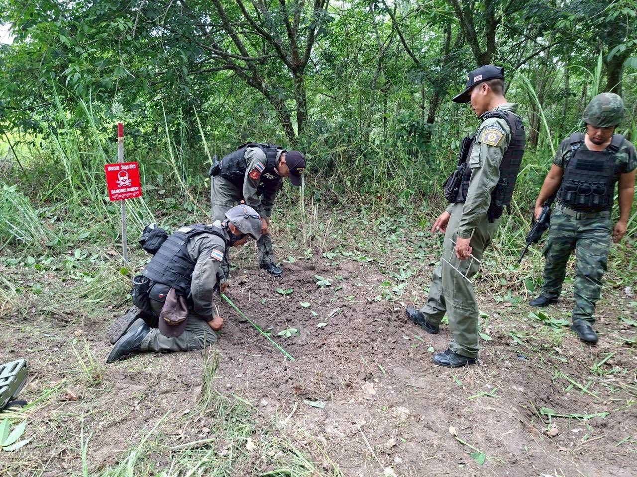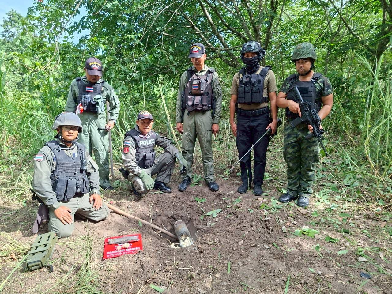 เวลา 14.45 น. (18 ส.ค.68) พล.ต.ต.พิษณุ วัตถุ ผบก.ภ.จว.ศรีสะเกษ , พ.ต.อ.สาธิต สถิตถาวร ผกก.สืบสวน ภ.จว.ศรีสะเกษ, พ.ต.ท.บรรชิด หวังแววกลางรอง ผกก.สืบสวน ภ.จว.ศรีสะเกษ , พ.ต.ท.เกรียงศักดิ์ ส่องแสงรอง ผกก.สืบสวน ภูธรจังหวัดศรีสะเกษ เจ้าหน้าที่เกี่ยวข้อง ชุดปฏิบัติการเก็บกู้และทำลายวัตถุระเบิด (EOD) กก.สืบสวน ภูธรจังหวัดศรีสะเกษ ร่วมกับ ชุด EOD กก.ตชด.22 ได้ร่วมกันตรวจสอบจุดกระสุนปืนใหญ่ตกไม่ทำงานตกค้างในพื้นที่บริเวณบ้านโศกขามป้อม ม.4 ต.ภูผาหมอก อ.กันทรลักษ์ ผลการปฏิบัติการทำลายสมบูรณ์พื้นที่ปลอดภัย