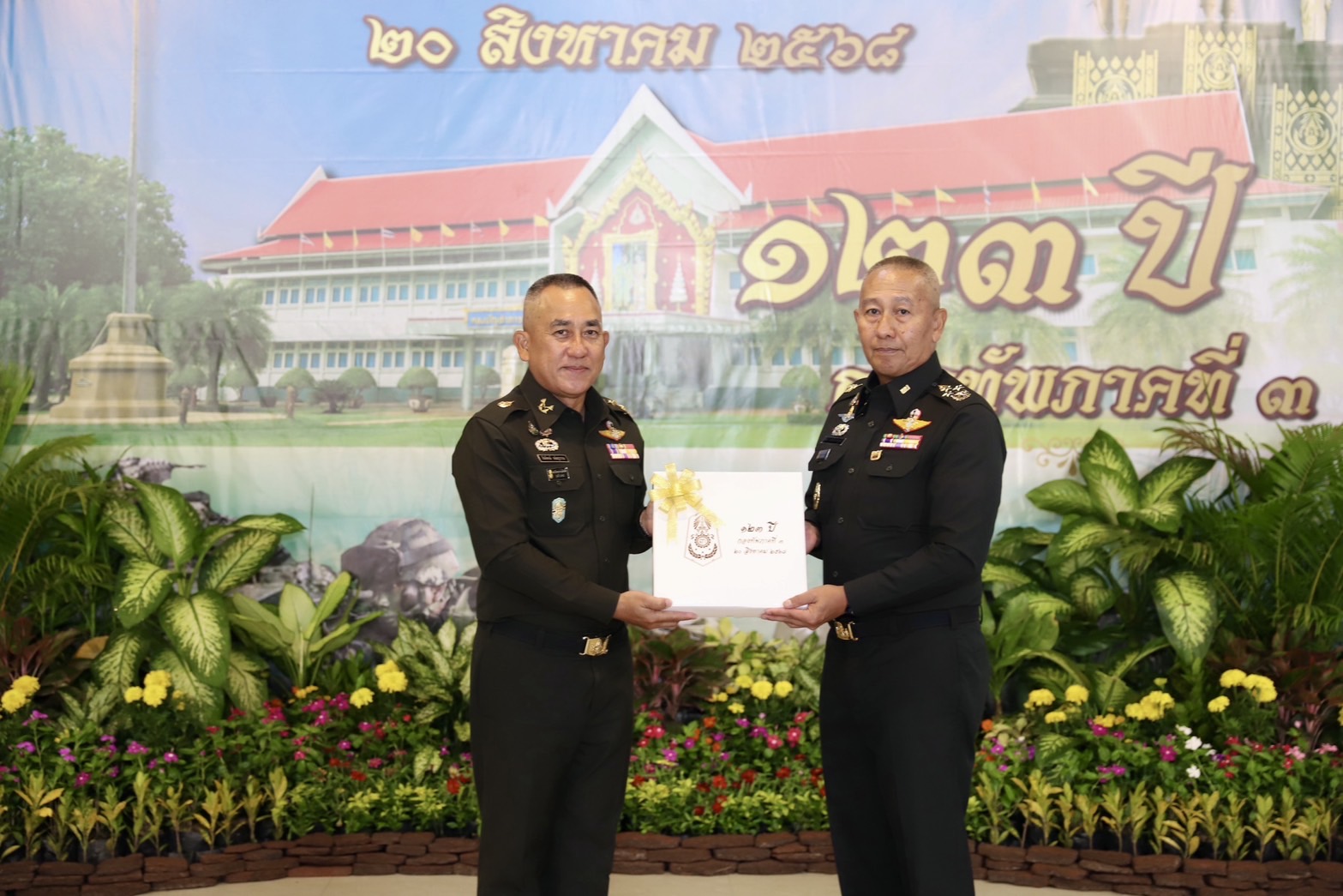 เมื่อวันที่ 20 ส.ค.68 พล.อ.พนา แคล้วปลอดทุกข์ ผู้บัญชาการทหารบก (ผบ.ทบ.) พร้อมคณะผู้บังคับบัญชาระดับสูงของกองทัพบก ร่วมงานวันสถาปนากองทัพภาคที่ 3 ครบรอบปีที่ 123 โดยมี พล.ท.กิตติพงษ์ แจ่มสุวรรณ แม่ทัพภาคที่ 3 ให้การต้อนรับ ณ กองบัญชาการกองทัพภาคที่ 3 ค่ายสมเด็จพระนเรศวรมหาราช จ.พิษณุโลก โดยผู้บัญชาการทหารบก ได้ถวายราชสักการะพระบรมราชานุสาวรีย์สมเด็จพระนเรศวรมหาราช, พระบรมรูปสมเด็จพระเอกาทศรถและพระรูปพระสุพรรณกัลยา จากนั้นเยี่ยมชมการจัดแสดงนิทรรศการประวัติศาสตร์การกำเนิดเกิดขึ้นของหน่วยทหารในพื้นที่ ทภ.3, นวัตกรรมของหน่วยขึ้นตรง, โครงการทหารพันธุ์ดีและผลิตภัณฑ์แม่บ้าน สาขา ทภ.3 ในโอกาสนี้ ผู้บัญชาการทหารบก นำกำลังพลประกอบพิธีสงฆ์ เพื่อความเป็นสิริมงคลและอุทิศส่วนกุศลให้กับผู้บังคับบัญชาและกำลังพลที่ล่วงลับ