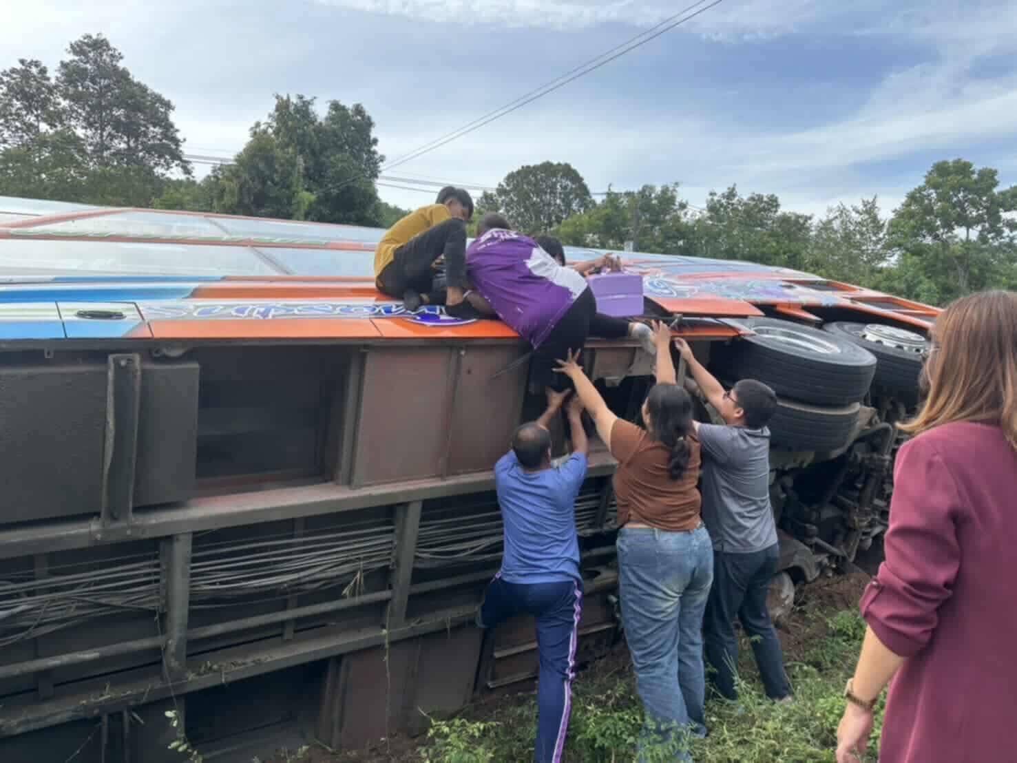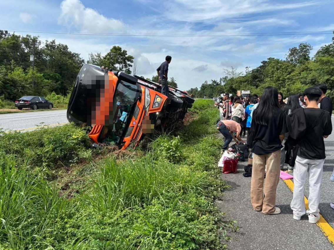 วันที่ 21 สิงหาคม 2568 เวลา 09.20 น. ที่ทำการปกครองจังหวัดอุตรดิตถ์กลุ่มงานความมั่นคง)ได้รับประสานจาก สภ.ตรอน จ.อุตรดิตถ์ เกิดเหตุรถยนต์บัสตกร่องถนนทางหลวงหมายเลข 11 ขาขึ้น ก่อนถึงแยกบ้านไร่ หมู่ที่ 10 ต.น้ำอ่าง อ.ตรอน จ.อุตรดิตถ์ รถบัสคันดังก่าวเป็นรถบัสนำนักเรียน โรงเรียนเตรียมอุดมศึกษาภาคเหนือพิษณุโลก จะเดินทางไปจังหวัดพะเยา จำนวนนักเรียน 40 คน ครู 3 คน เสียหลักตกร่องถนนลงข้างทาง มีผู้ได้รับบาดเจ็บเล็กน้อย หญิง 2 ราย กู้ชีพน้ำอ่างนำคนเจ็บปฐมพยาบาลเบื้งต้น สายตรวจน้ำอ่างดำเนินการอำนวยความสะดวกทางการจราจร ตรวจค้นสิ่งผิดกฏหมายในรถที่เกิดอุบัติเหตุคันดังกล่าว ผลการตรวจค้น ไม่พบสิ่งผิดกฏหมายและแจ้งส่วนที่เกี่ยวข้องเพื่อดำเนินการต่อไป