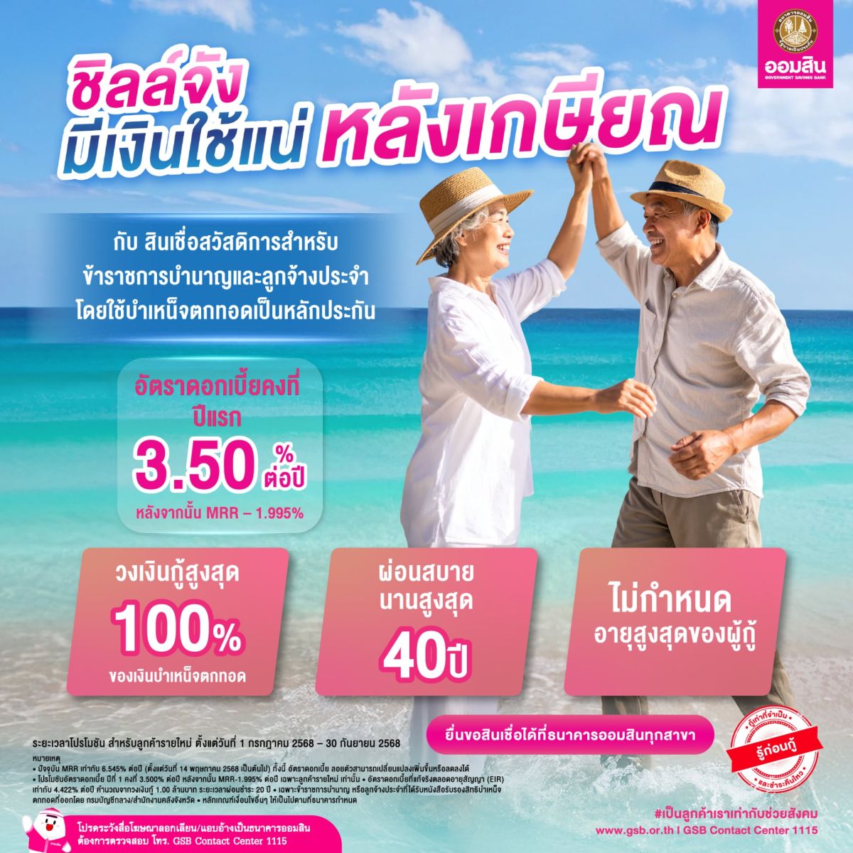 ใช้ชีวิตหลังเกษียณได้สบายใจ หมดกังวลเรื่องเงิน ด้วยสินเชื่อสวัสดิการสำหรับข้าราชการบำนาญและลูกจ้างประจำโดยใช้บำเหน็จตกทอดเป็นหลักประกัน