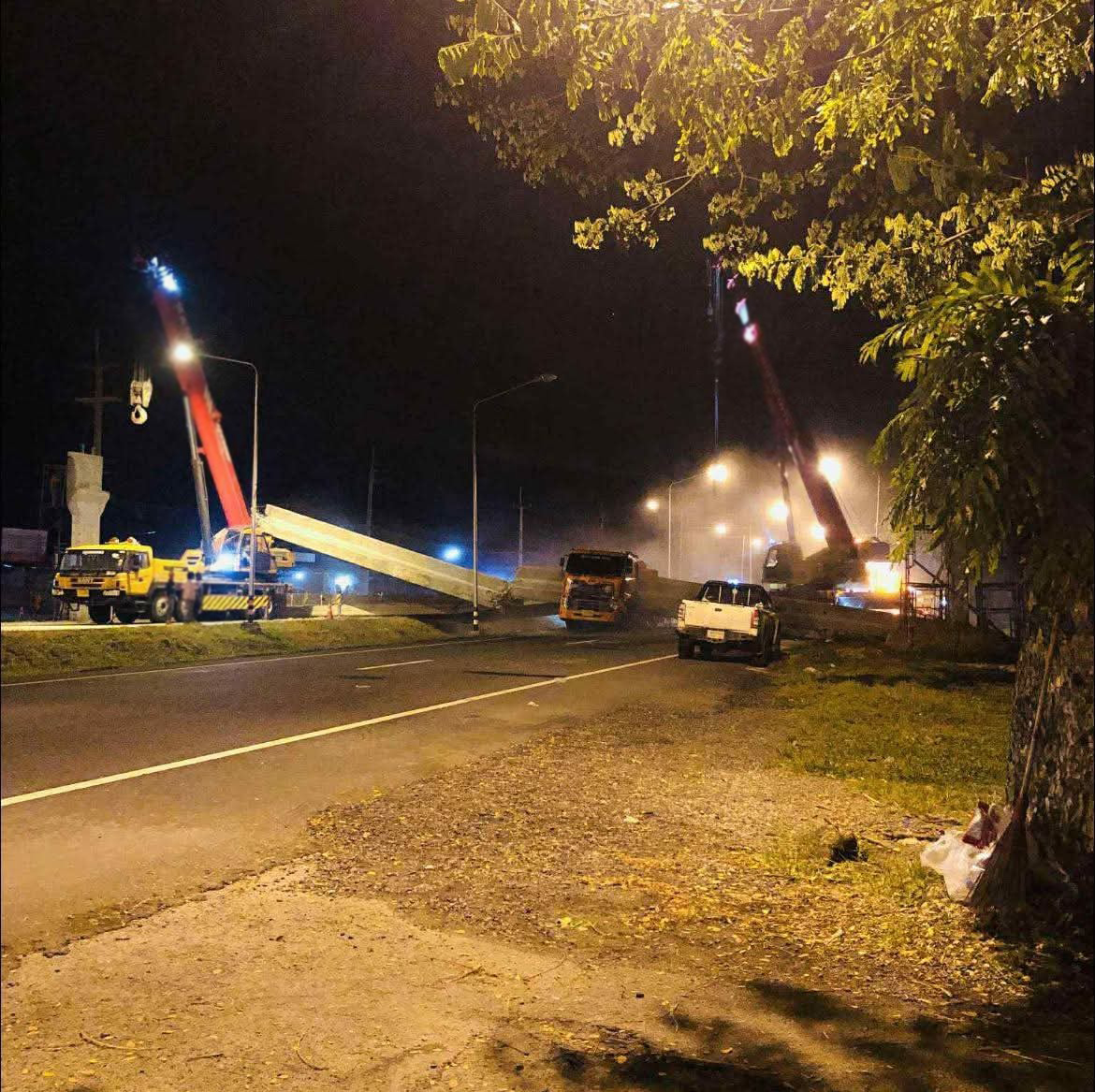 คานสะพานลอยคนข้าม ร่วงระหว่างก่อสร้าง ถนนหมายเลข 317 ใกล้เคียงทางเข้า ตลาดเทศบาลอำเภอมะขาม โชคดีไร้บาดเจ็บหรือเสียชีวิต จ.จันทบุรี