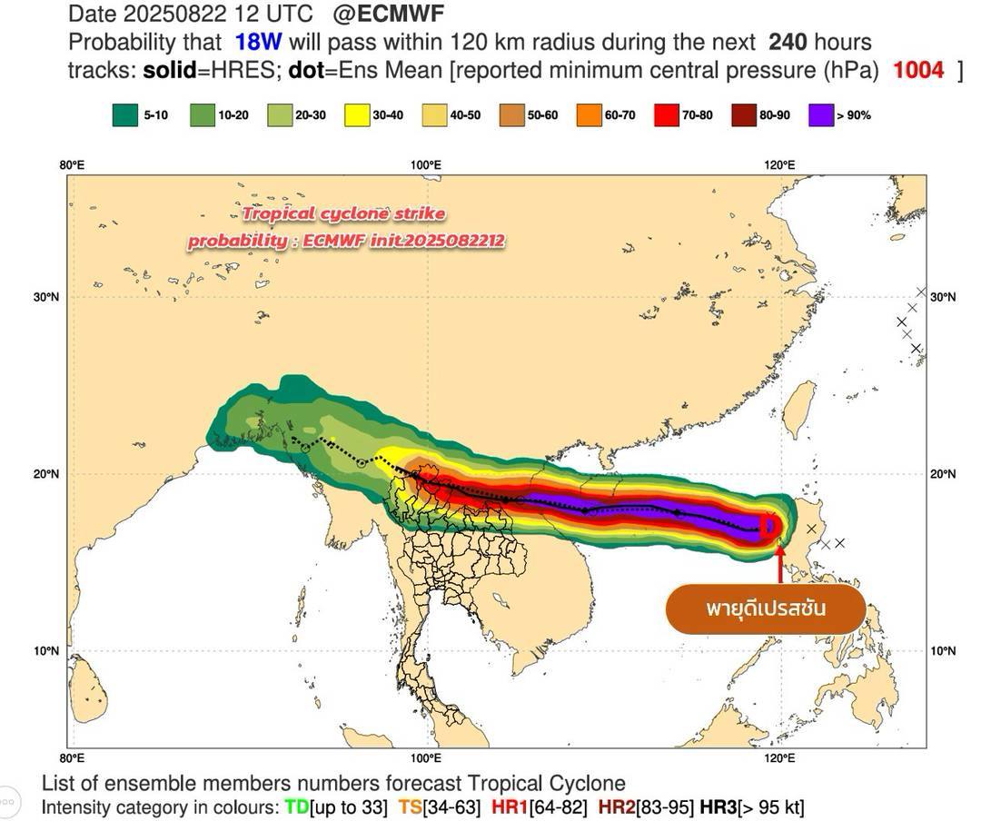 ประเทศไทย และอ่าวไทยมีกำลังแรงขึ้น จากอิทธิพลดังกล่าว ทำให้ในช่วงวันที่ 24–27 ส.ค. 68 ประเทศไทยจะมีฝนเพิ่มมากขึ้น และมีฝนตกหนักถึงหนักมาก หลายพื้นที่ กับมีลมแรงบริเวณภาคตะวันออกเฉียงเหนือตอนบน ภาคเหนือ ภาคกลาง ภาคตะวันออก และภาคใต้ฝั่งตะวันตก