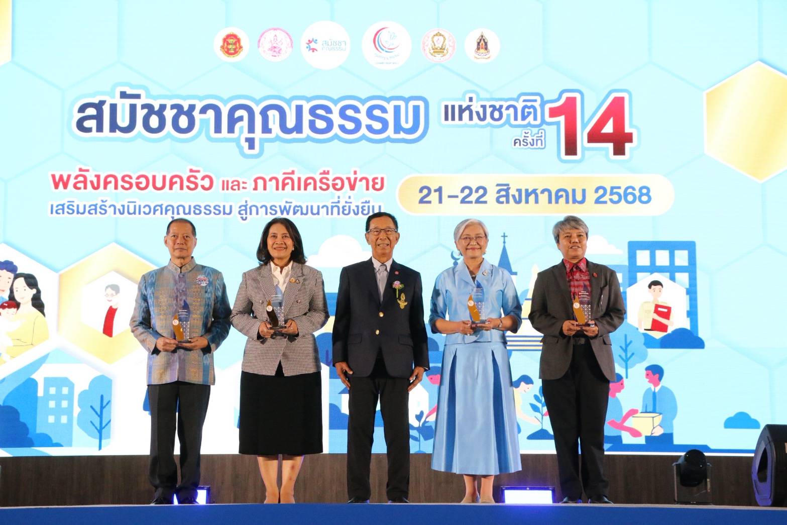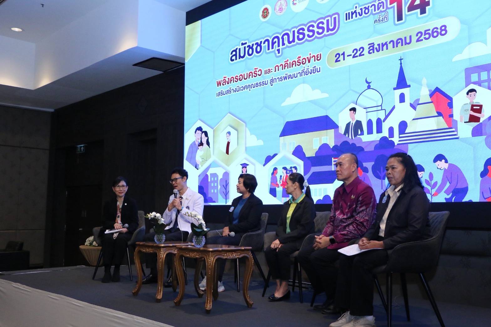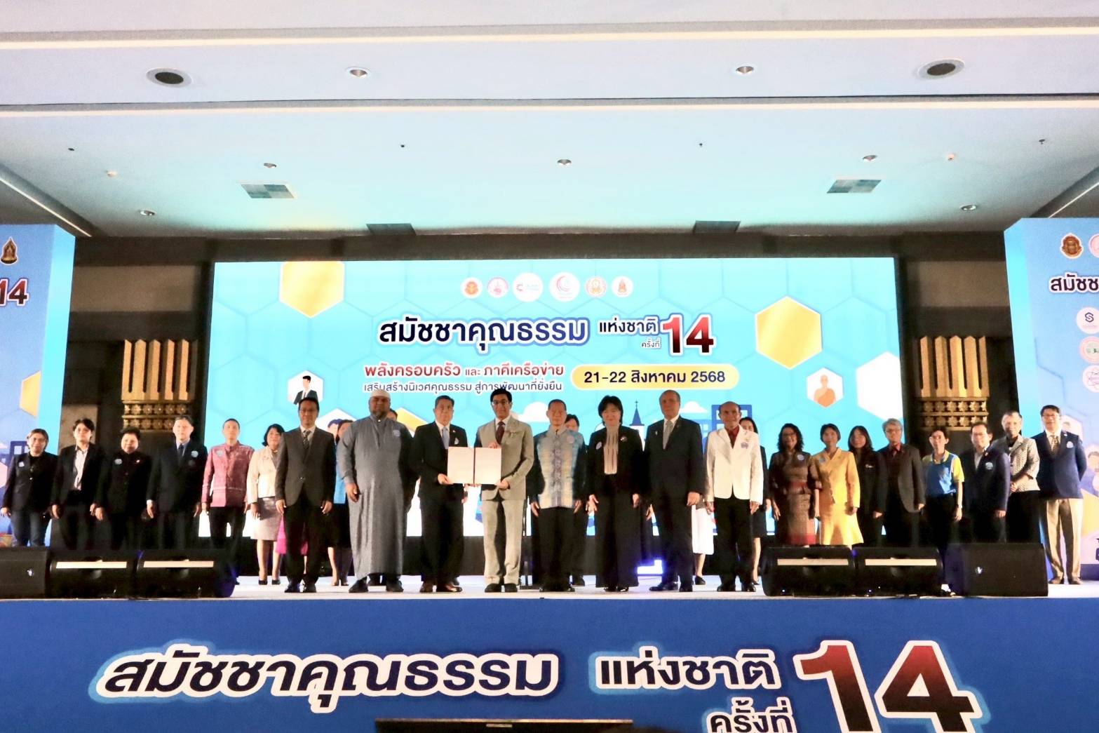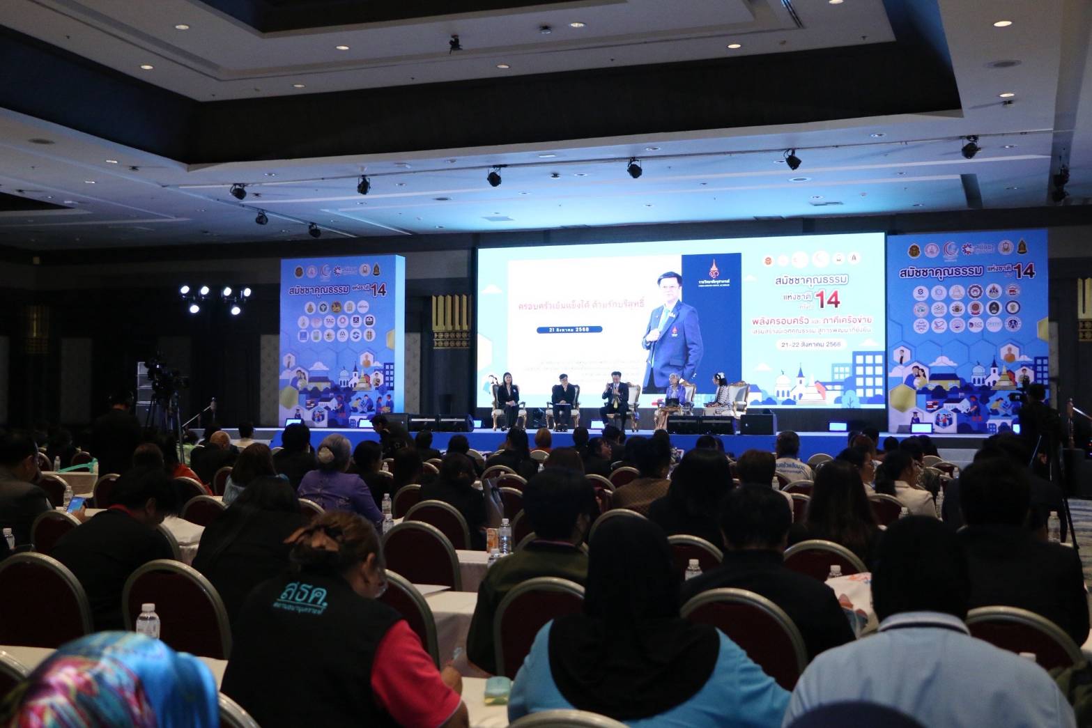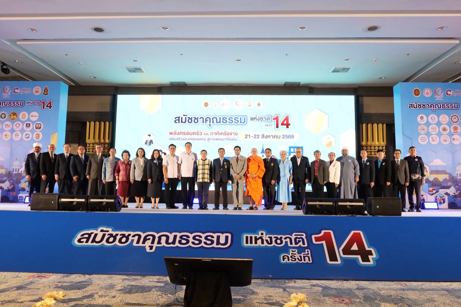 21–22 สิงหาคม 2568 ศูนย์คุณธรรม (องค์การมหาชน) และองค์กรภาคีร่วมจัด จัดงาน สมัชชาคุณธรรมแห่งชาติ ครั้งที่ 14 ภายใต้แนวคิด “พลังครอบครัวและภาคีเครือข่าย เสริมสร้างนิเวศคุณธรรม สู่การพัฒนาที่ยั่งยืน” ณ ห้องแกรนด์ ไดมอนด์บอลรูม ศูนย์การประชุมอิมแพค ฟอรั่ม เมืองทองธานี จังหวัดนนทบุรี โดยมีผู้เข้าร่วมงานกว่า 3,000 คน ประกอบด้วยหน่วยงานภาครัฐ ภาคเอกชน ภาคประชาสังคม สถานศึกษา ภาคศาสนา เครือข่ายครอบครัว สื่อมวลชน และประชาชนทั่วไป พร้อมการถ่ายทอดสดทาง Facebook Live: ศูนย์คุณธรรม Moral Center Thailand โดยมีบูธจัดแสดงผลงาน 131 บูธ แสดงความสำเร็จของภาคีเครือข่ายด้านคุณธรรมจากทั่วประเทศ