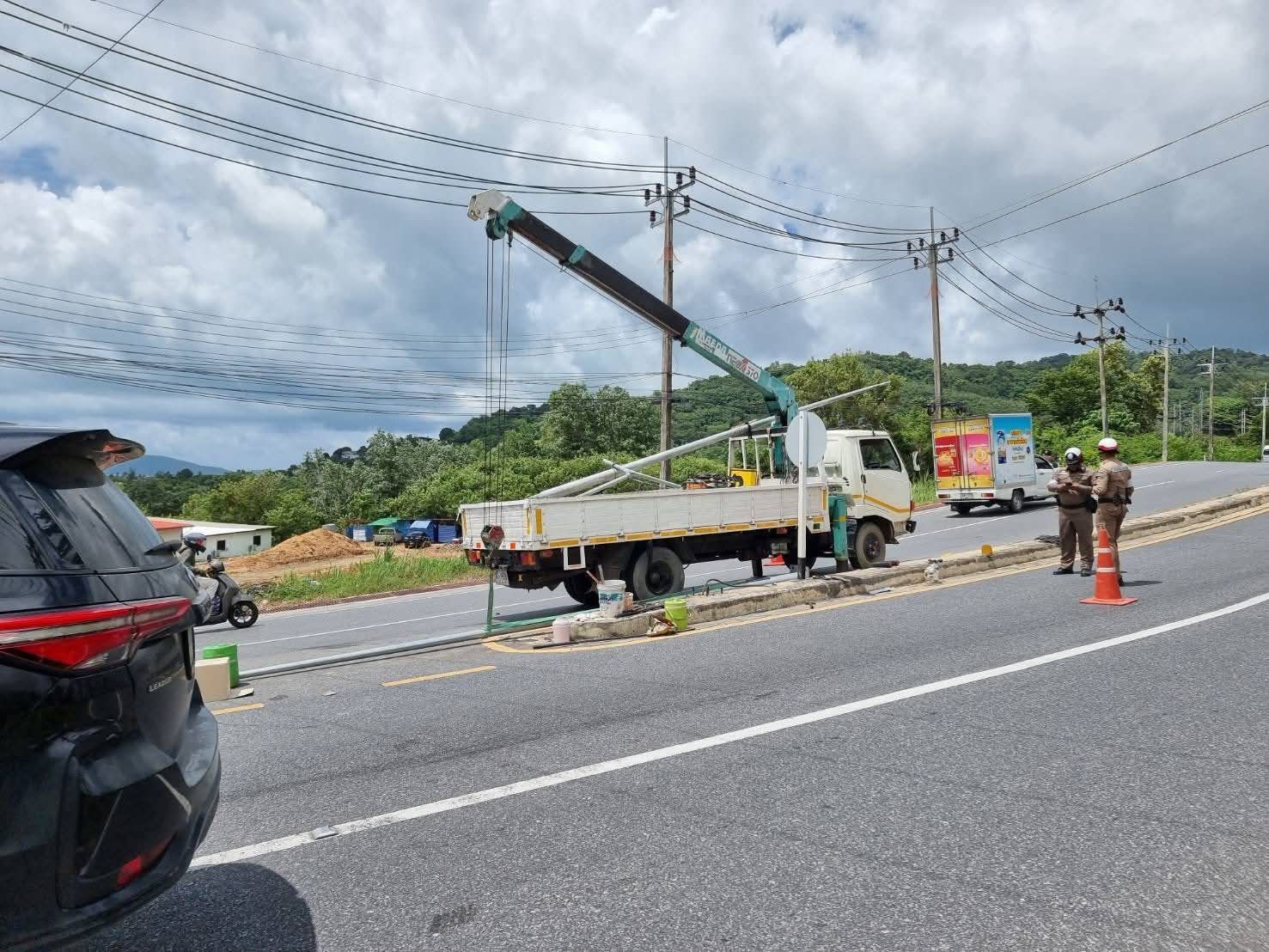 ไฟดูดช่างติดตั้งเสาไฟส่องสว่างริมถนนปฎัก บริเวณทางขึ้นเขากะตะ บาดเจ็บ 4 ราย จ.ภูเก็ต