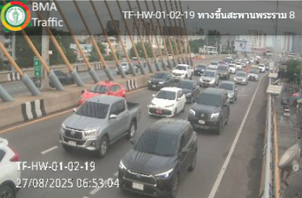 - สะพานพระราม 8 ขาเข้า ท้ายแถวสะสมอยู่ที่แยกอรุณอมรินทร์