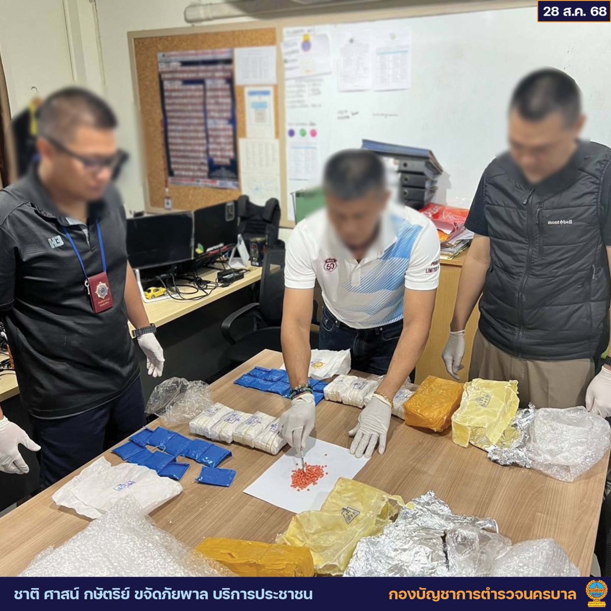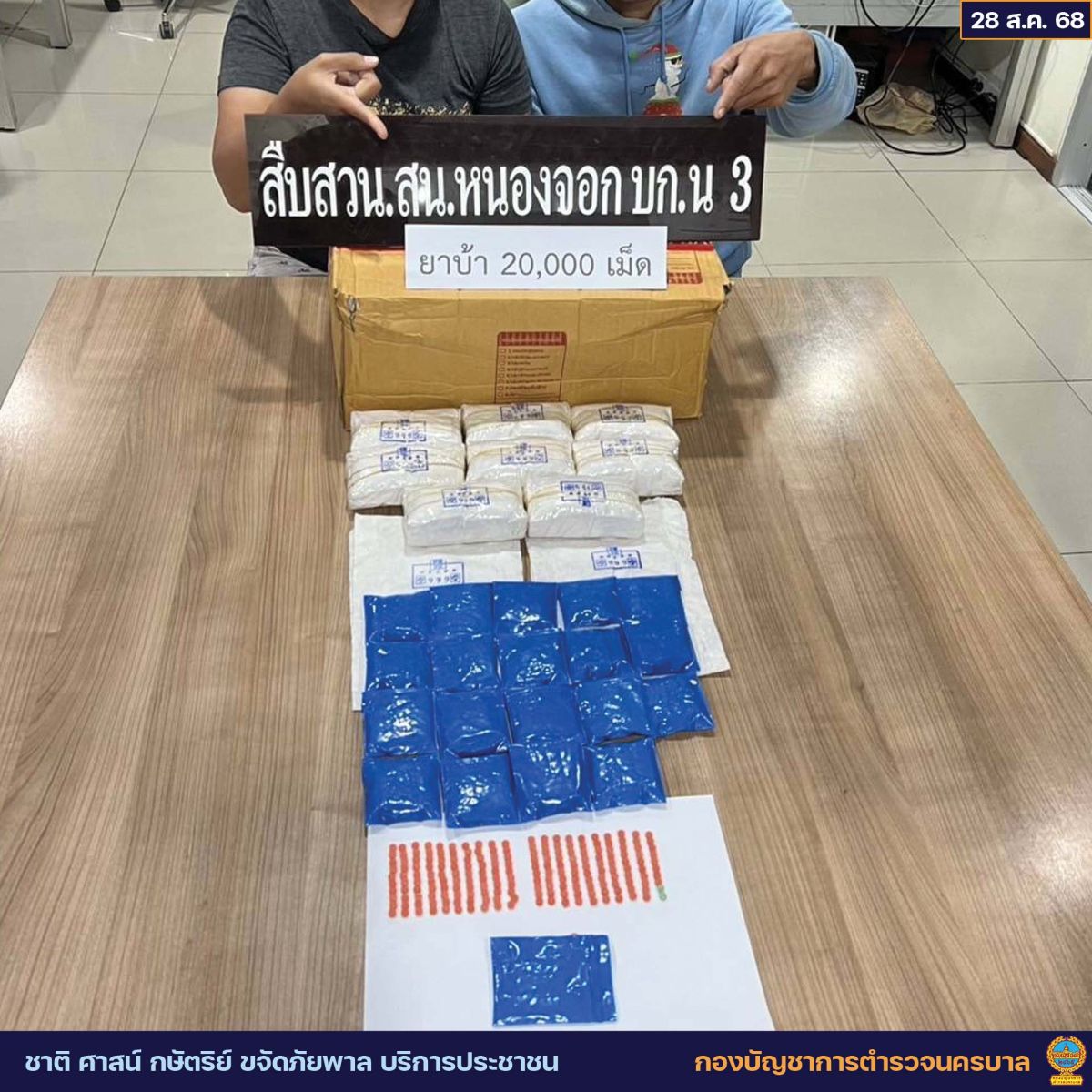 จากนั้นเจ้าหน้าที่ตำรวจฝ่ายสืบสวน สน.หนองจอก ได้จับกุมผู้ต้องหาตามหมายจับของศาลอาญามีนบุรีทั้งสองราย และได้ทำการสืบสวนขยายผลจนสามารถตรวจยึดยาบ้า จำนวน 20,000 เม็ด และยังสามารถสกัดการส่งยาบ้าทางพัสดุ โดยประสาน ชปข.ร้อย ตชด.417 , สภ.ขุนทะเล , ปปส.ภาค 8 และ กอ.รมน.จว.สฎ ทำการตรวจยึดยาบ้า เพิ่มเติมอีก 240,000 เม็ด จากคลังกระจายสินค้าบริษัทขนส่ง จ.สุราษฎร์ธานี รวมตรวจยึดยาบ้าได้ทั้งสิ้น 260,000 เม็ด และเร่งขยายผลเครือข่ายค้ายาบ้ากลุ่มนี้ต่อไป
