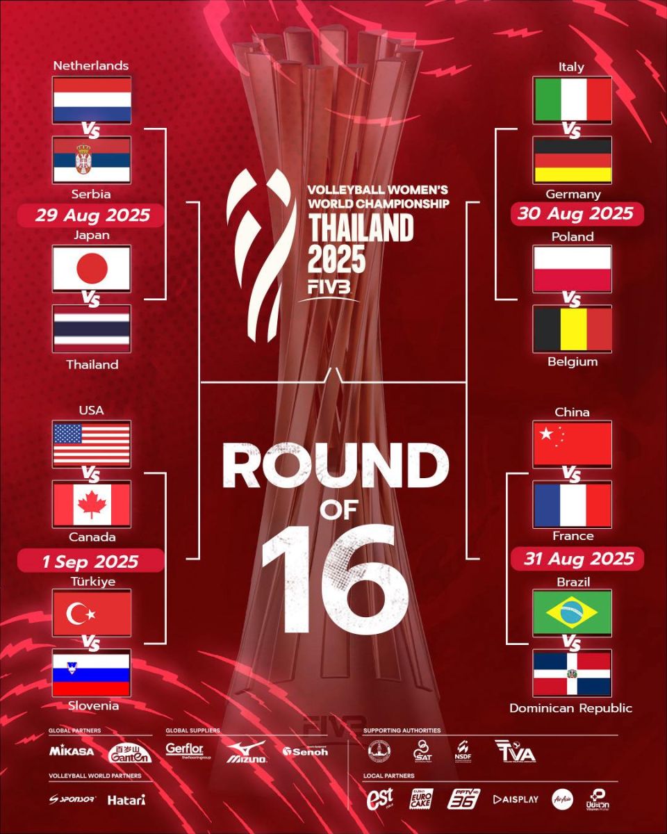 ตารางแข่งรอบ 16 ทีม วอลเลย์บอลหญิงชิงแชมป์โลก 2025