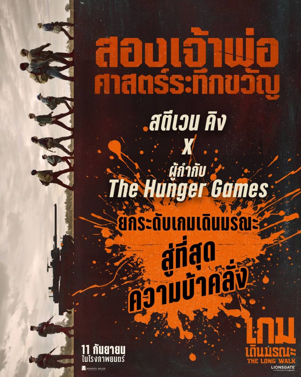#91MovieUpdate “สตีเวน คิง” ราชานิยายสยองขวัญ แท็กทีม “ผู้กำกับเดอะฮังเกอร์เกมส์” จัดเต็มความโหดระดับ “เรตอาร์” ใน “The Long Walk เกมเดินมรณะ” 11 กันยายนนี้ ในโรงภาพยนตร์