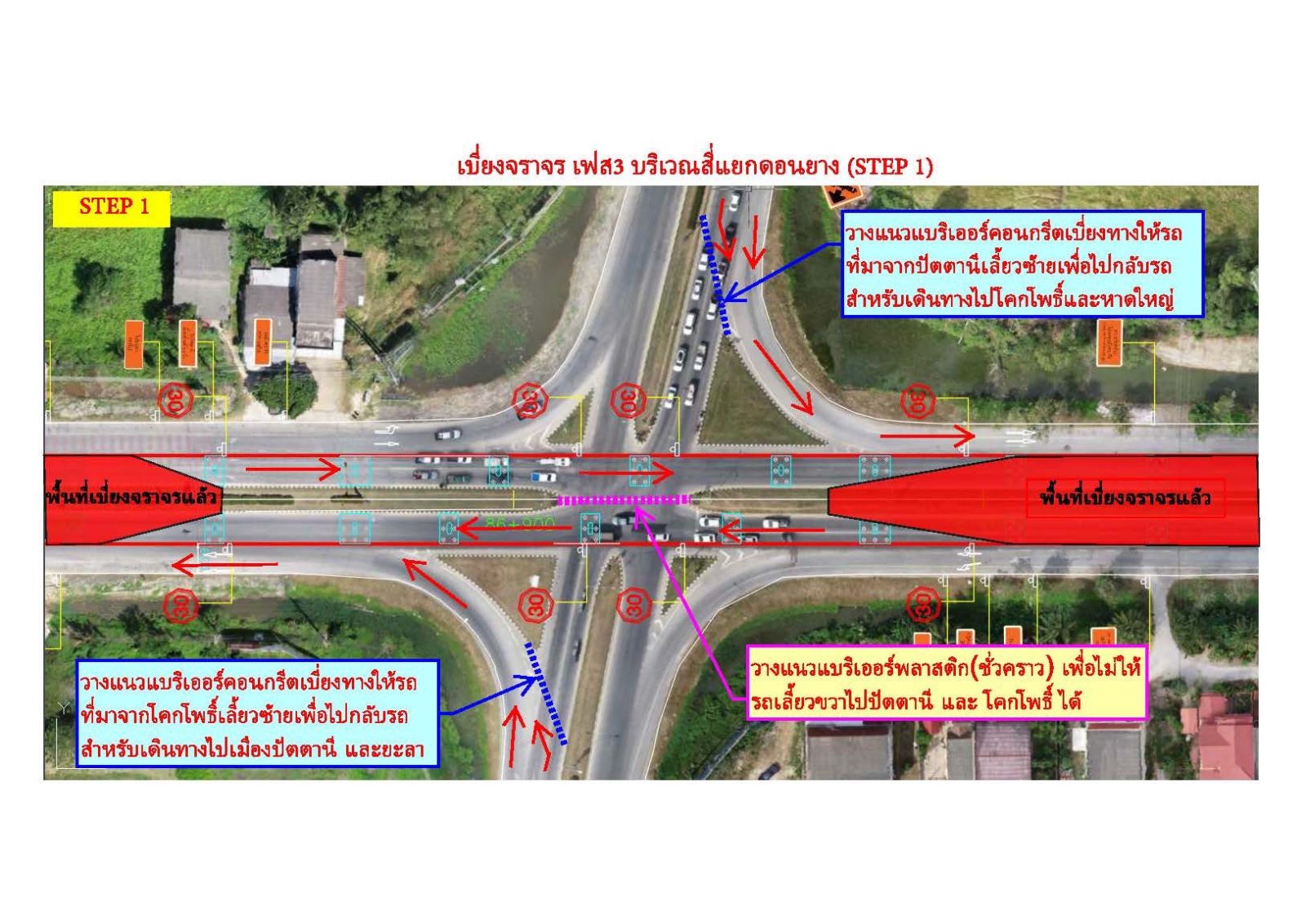 โดยให้ใช้เส้นทางเบี่ยงและจุดยูเทิร์น 2 จุด ดังต่อไปนี้