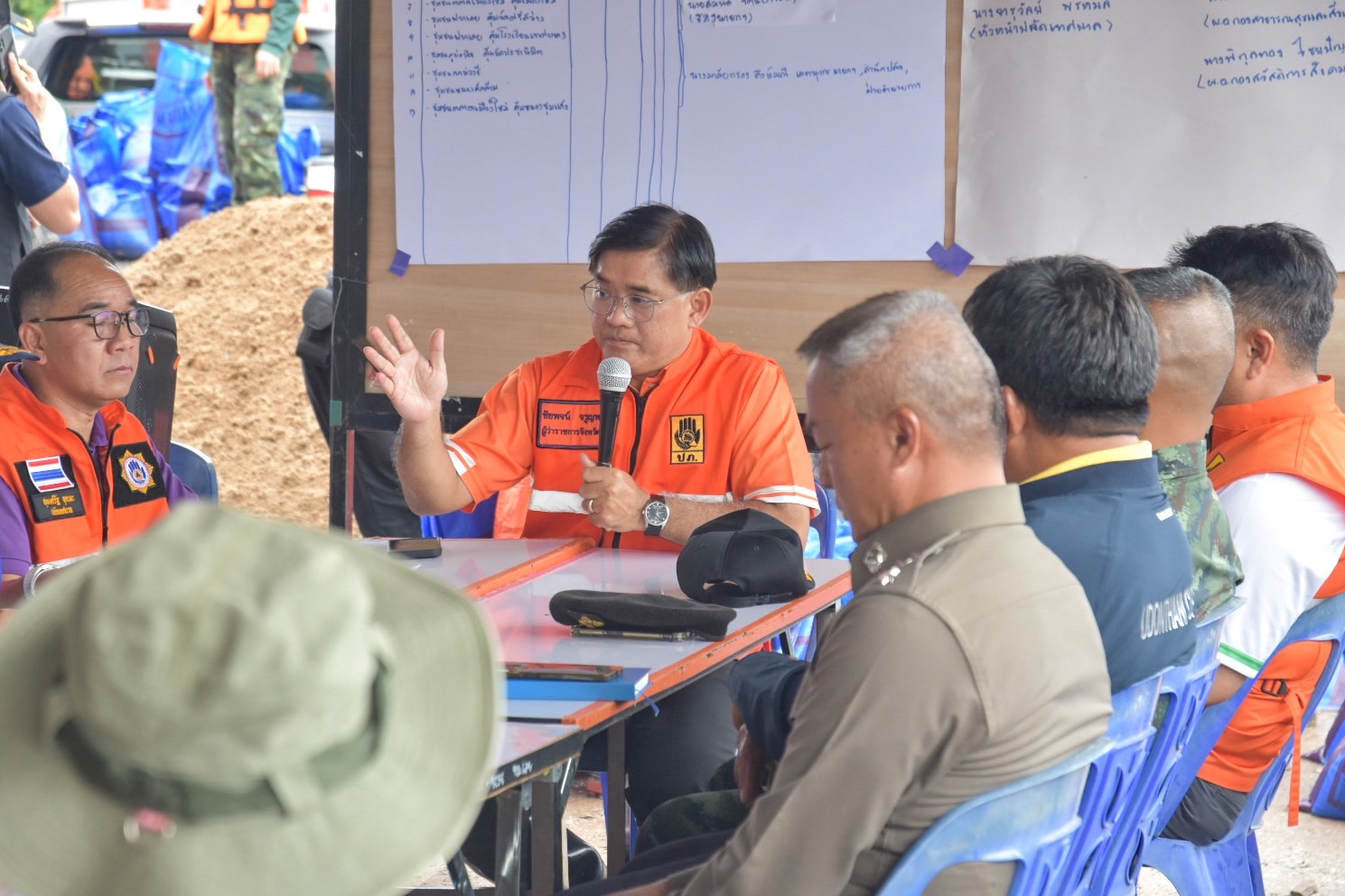 วันที่ 2 กันยายน 2568 เวลา 10.00 น. ที่ศูนย์อำนวยการป้องกันและบรรเทาสาธารณภัยเทศบาลเมืองเลย ตำบลกุดป่อง อำเภอเมืองเลย จังหวัดเลย (บริเวณประตูน้ำหลังไปรษณีย์เลย) นายชัยพจน์ จรูญพงศ์ ผู้ว่าราชการจังหวัดเลย ลงพื้นที่ติดตามสถานการณ์น้ำแม่น้ำเลยอย่างต่อเนื่อง โดยมี นายไพรินทร์ ลิ่มเจริญ รองผู้ว่าราชการจังหวัดเลย นางสาวภูมรินทร์ คงเพียรธรรม ปลัดจังหวัดเลย นายธีรภัทร สามไพบูลย์ ผู้อำนวยการโครงการชลประทานเลย พ.ต.ท.คูณทัต วีระศักดิกุล รักษาราชการแทนหัวหน้าสำนักงานป้องกันและบรรเทาสาธารณภัยจังหวัดเลย นายวรพจน์ โสระสิงห์ นายกเทศมนตรีเมืองเลย พร้อมบูรณาการร่วมกับหน่วยงานที่เกี่ยวข้อง เร่งบรรจุกระสอบทรายและนำกระสอบทราย เพื่อใช้ก่อพนังกั้นน้ำแม่น้ำเลยไม่ให้ล้นทะลักเข้าสู่บ้านเรือนประชาชน พร้อมแจกจ่ายให้ประชาชนนำไปเสริมแนวป้องกันน้ำทะลักเข้าสู่บ้านเรือนของตนเอง ตลอดจนเพื่อป้องกันน้ำทะลักเข้าสู่บ้านเรือนประชาชนและพื้นที่เศรษฐกิจ ซึ่งเป็นมาตรการเร่งด่วนในการป้องกันผลกระทบและลดความเสียหายเพิ่มเติมจากระดับน้ำของแม่น้ำเลยที่สูงขึ้น เพื่อสร้างความอุ่นใจและคลายความกังวลให้แก่พี่น้องประชาชนในพื้นที่ประสบเหตุอุทกภัย จากนั้นผู้ว่าราชการจังหวัดเลย พร้อมคณะ ได้ลงพื้นที่ชุมชนบ้านเลิงใหญ่หมู่บ้านมั่นคง ตำบลกุดป่อง เพื่อนำข้าวกล่องและน้ำดื่มไปแจกจ่ายให้กับประชาชนที่ได้รับความเดือดร้อน