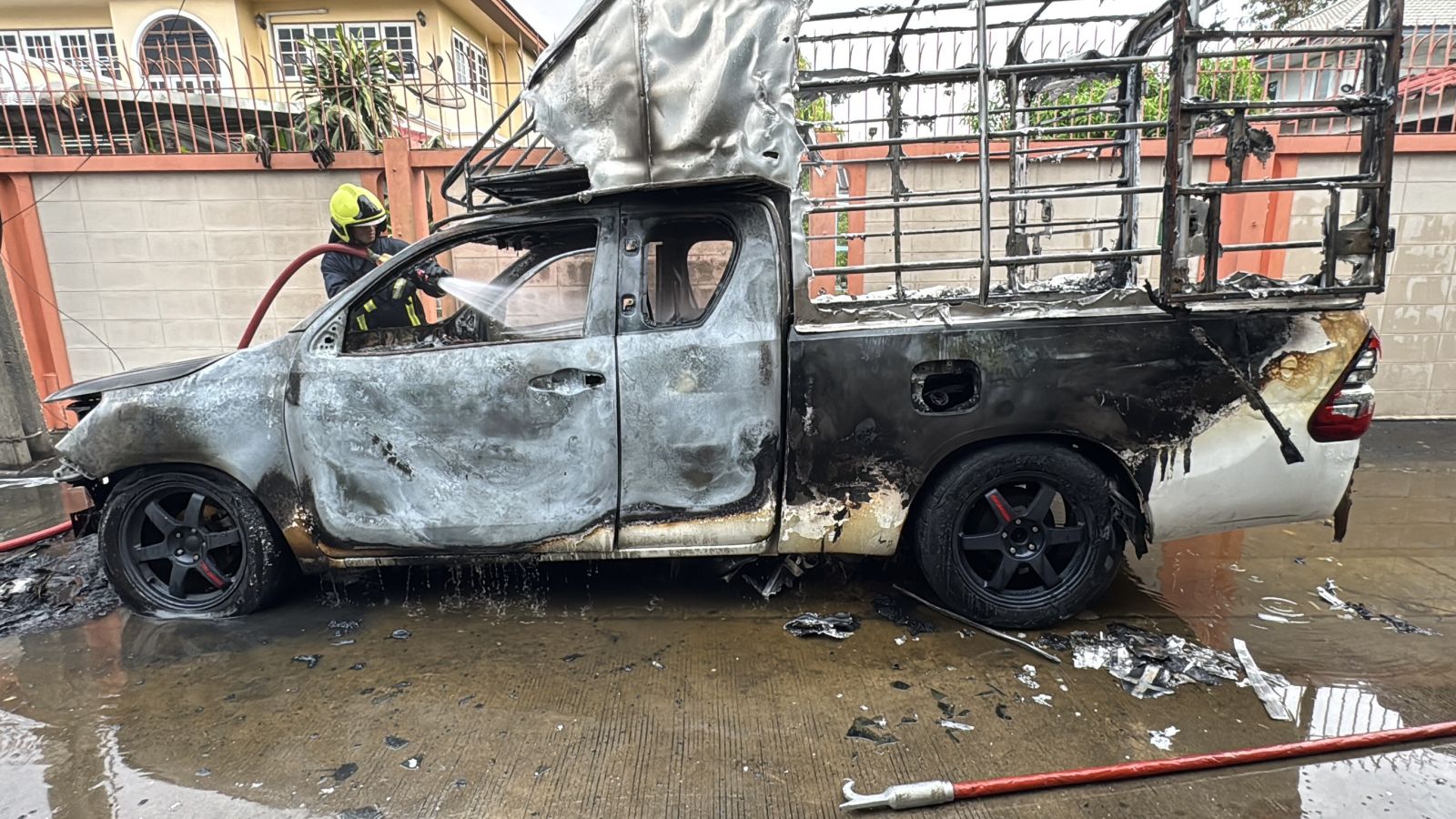 เมื่อเวลา 17:00 น.วันที่ 2 ก.ย.68 เจ้าหน้าที่ตำรวจ สภ.ปากเกร็ด จ.นนทบุรี พร้อมอาสาสมัครมูลนิธิร่วมกตัญญูเดินทางเข้าตรวจสอบหลังจากได้รับแจ้งมีเหตุไฟไหม้รถยนต์กระบะ ภายในซอยเลี่ยงเมืองปากเกร็ด 9 ถนนเลี่ยงเมืองปากเกร็ด ต.บางพูดอ.ปากเกร็ด จึงประสานรถดับเพลิงของเทศบาลนครปากเกร็ดร่วมสนับสนุน