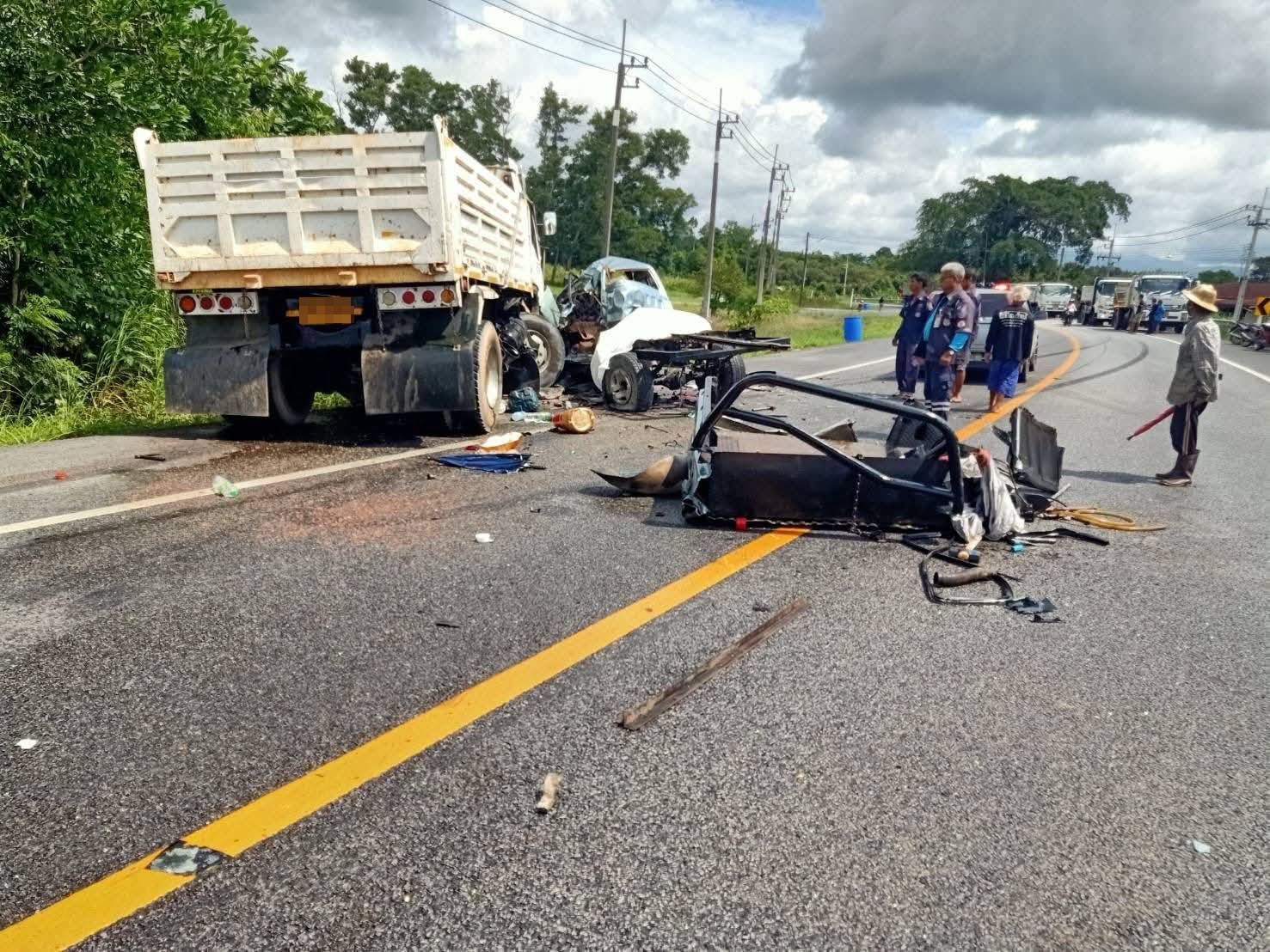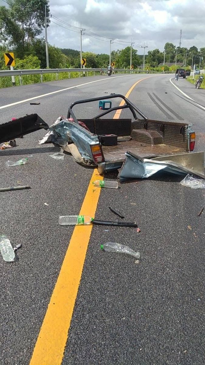รถกระบะชนประสานงากับรถบรรทุก สภาพรถแทบเป็นเศษเหล็ก พบร่างผู้เสียชีวิต เป็นคุณตา วัย 74 ปีอยู่ในซากรถ จ.จันทบุรี