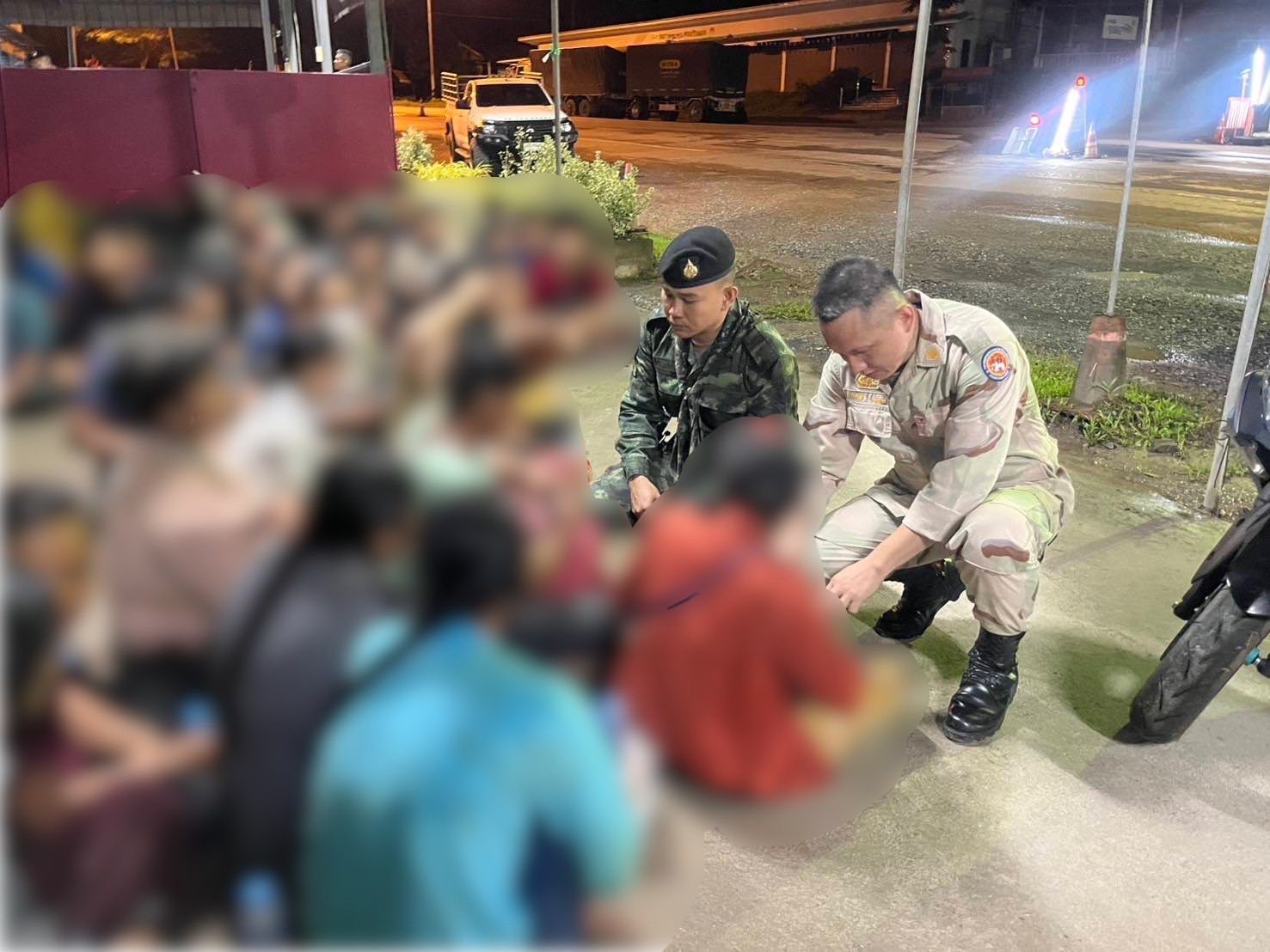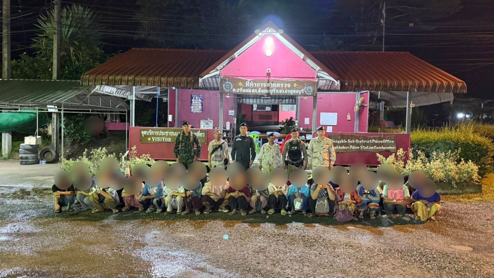จึงได้จัดชุดเจ้าหน้าที่ลาดตระเวนเฝ้าตรวจ ในจุดที่ได้รับแจ้ง และบริเวณใกล้เคียง กระทั่งเวลา 20.00 น. เจ้าหน้าที่ได้ สังเกตพบรถตู้ หมายเลขทะเบียน กรุงเทพมหานคร จำนวน 1 คัน จอดอยู่บริเวณริมถนนข้างบ่อขยะ บ้านยางขาว ม.4 ต.ปรังเผล อ.สังขละบุรี จ.กาญจนบุรี ลักษณะคล้ายบรรทุกสิ่งของหนัก จึงได้เข้าตรวจสอบ พบบุคคลต่างด้าวผิดกฎหมาย สัญชาติเมียนมา จำนวน 43 ราย (ชาย 23 ราย, หญิง 20 ราย) อัดแน่นเต็มห้องโดยสาร ไม่มีเอกสารประจำตัว เจ้าหน้าที่จึงได้ควบคุมตัวไว้ทั้งหมด
