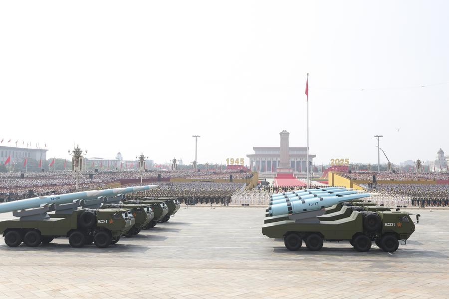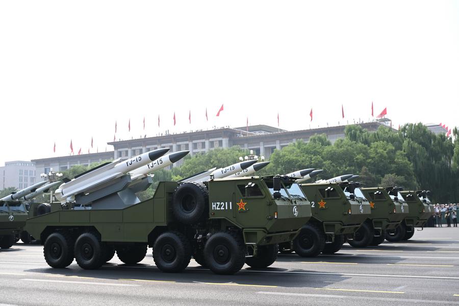 ปักกิ่ง, 3 ก.ย. (ซินหัว) — จีนเปิดตัวขีปนาวุธความเร็วเหนือเสียงสำหรับต่อต้านเรือ จำนวน 4 รุ่น ได้แก่ อิงจี-15 อิงจี-19 อิงจี-17 และอิงจี-20 ระหว่างพิธีสวนสนามทางทหารครั้งยิ่งใหญ่ บริเวณจัตุรัสเทียนอันเหมิน ใจกลางกรุงปักกิ่งของจีน เนื่องในวาระครบรอบ 80 ปี ชัยชนะในสงครามประชาชนจีนต่อต้านการรุกรานของญี่ปุ่น และสงครามต่อต้านลัทธิฟาสซิสต์โลก เมื่อช่วงเช้าวันพุธ (3 ก.ย.) ที่ผ่านมา