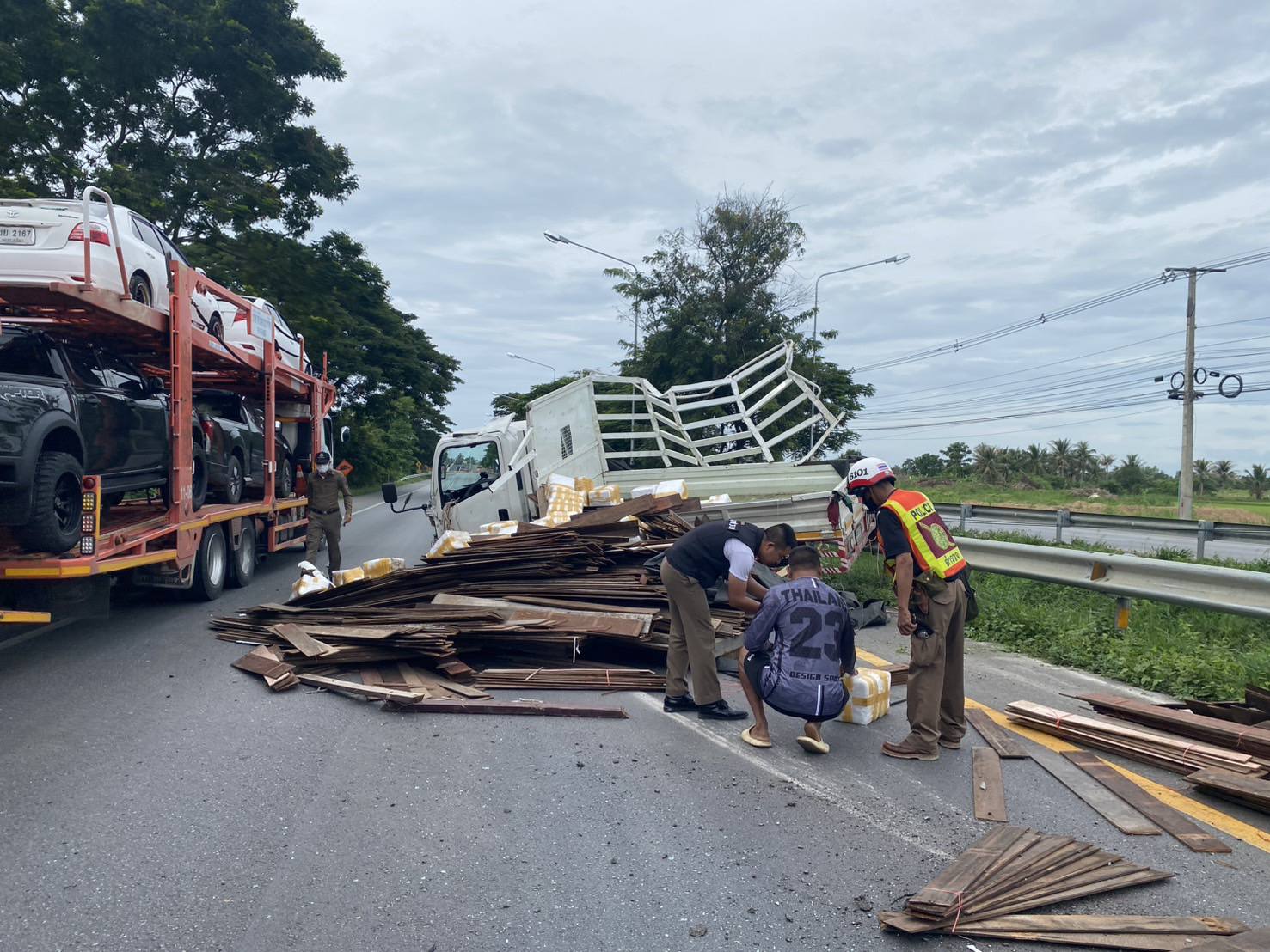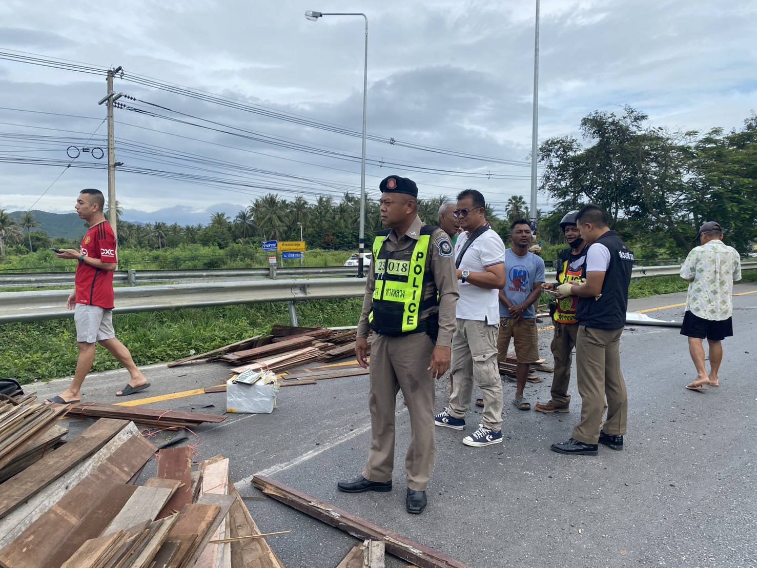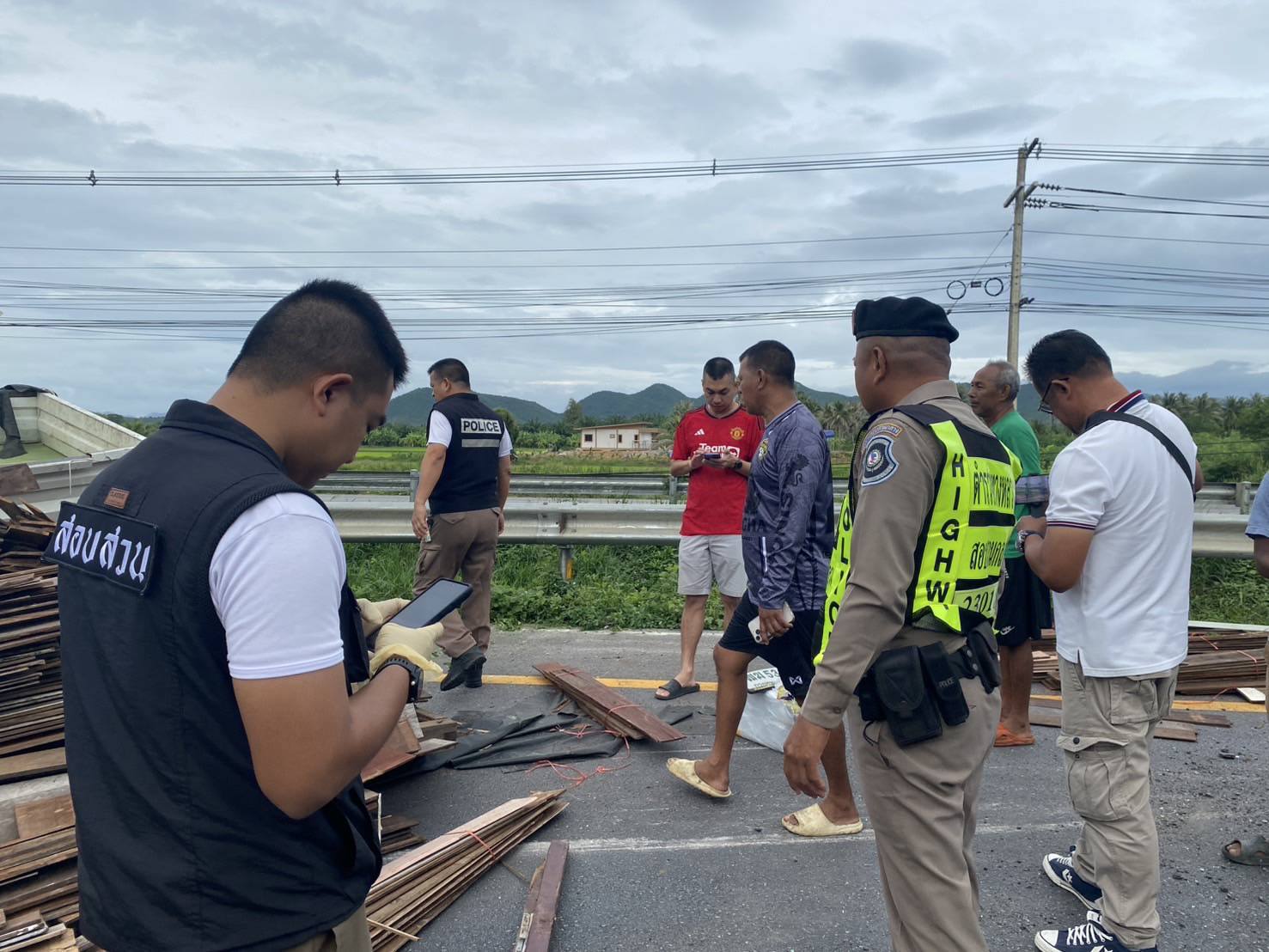 หลังรับแจ้งเจ้าหน้าที่ตำรวจสถานีตำรวจภูธรสามกระทาย , ตำรวจทางหลวงประจวบคีรีขันธ์ และ หน่วยกู้ภัยทางหลวงประจวบคีรีขันธ์ เข้าตรวจสอบที่เกิดเหตุ พบรถบรรทุก อีซูซุ สีขาว สภาพยางระเบิดแล้วพลิกตะแคง ภายในรถไม่พบคนขับแสดงตัวแต่อย่างใด บริเวณพื้นถนนใกล้เคียงกับรถที่ประสบเหตุมีแผ่นไม้จำนวนมาก พร้อมกับลังโฟมจำนวน 54 ลัง ตกหล่นบนพื้นเจ้าหน้าที่จึงเข้าทำการตรวจสอบภายในลังโฟม ปรากฏพบว่ามียาเสพติดจำนวนมาก เจ้าหน้าที่เลยตรวจยึดของกลางไว้ตรวจสอบ
