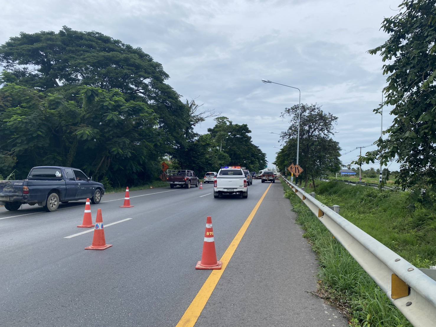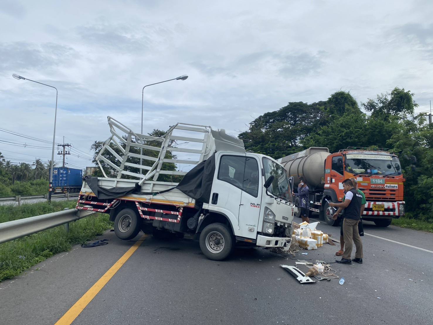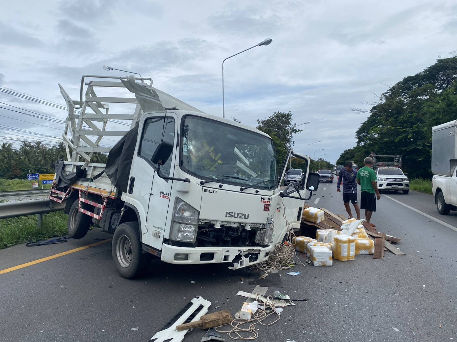 หลังรับแจ้งเจ้าหน้าที่ตำรวจสถานีตำรวจภูธรสามกระทาย , ตำรวจทางหลวงประจวบคีรีขันธ์ และ หน่วยกู้ภัยทางหลวงประจวบคีรีขันธ์ เข้าตรวจสอบที่เกิดเหตุ พบรถบรรทุก อีซูซุ สีขาว สภาพยางระเบิดแล้วพลิกตะแคง ภายในรถไม่พบคนขับแสดงตัวแต่อย่างใด บริเวณพื้นถนนใกล้เคียงกับรถที่ประสบเหตุมีแผ่นไม้จำนวนมาก พร้อมกับลังโฟมจำนวน 54 ลัง ตกหล่นบนพื้นเจ้าหน้าที่จึงเข้าทำการตรวจสอบภายในลังโฟม ปรากฏพบว่ามียาเสพติดจำนวนมาก เจ้าหน้าที่เลยตรวจยึดของกลางไว้ตรวจสอบ