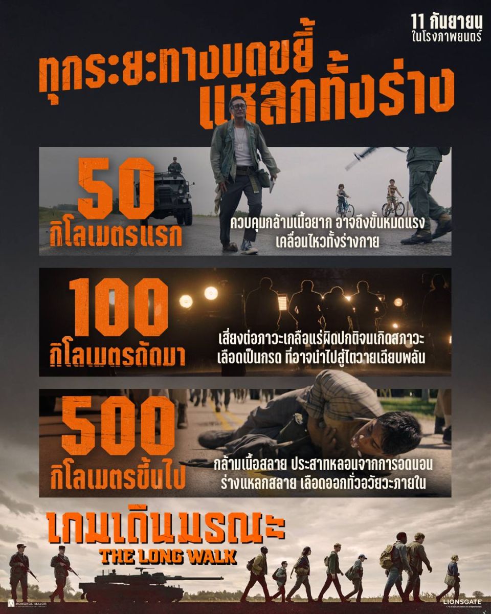 ไม่มีการพัก ไม่มีเส้นชัย หยุดเดินเมื่อไหร่ ตายเมื่อนั้น การแข่งขันดำเนินไปจนกว่าจะเหลือผู้รอดชีวิตเพียงหนึ่งเดียว “The Long Walk เกมเดินมรณะ” 11 กันยายนนี้ ในโรงภาพยนตร์