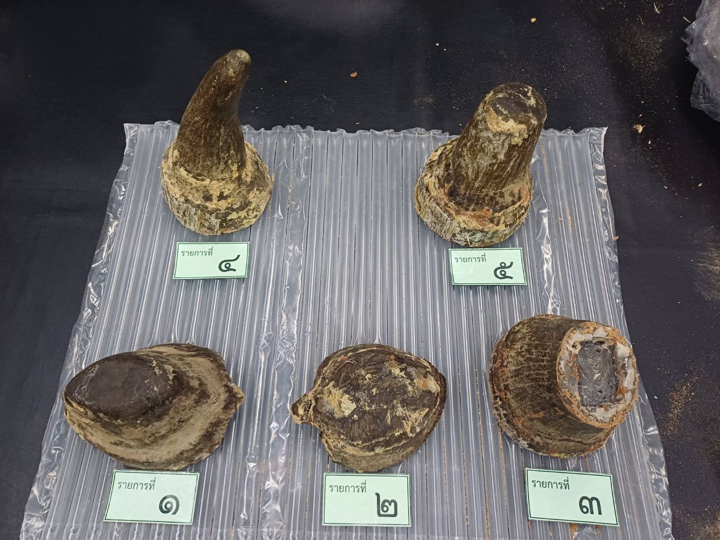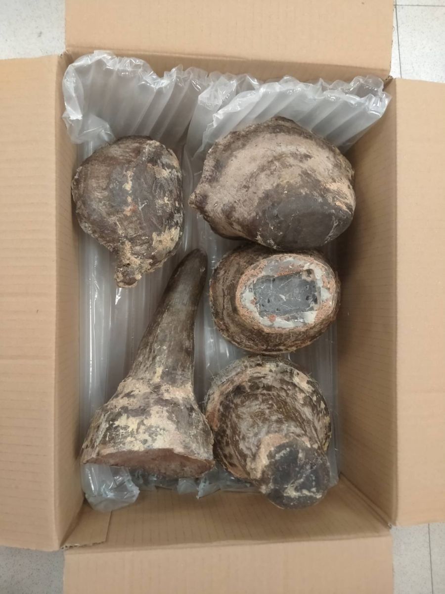ผลการตรวจสอบพบ นอแรด จำนวน 5 ชิ้น น้ำหนักรวม 6.86 กิโลกรัม มูลค่าเบื้องต้นประมาณ 6.9 ล้านบาท ซึ่งถูกซุกซ่อนอย่างแนบเนียนในท่อนไม้ที่ถูกเจาะและเชื่อมปิดอย่างมิดชิด ผู้ต้องหาไม่สามารถแสดงเอกสารการส่งออกซากสัตว์จากประเทศต้นทางได้ เจ้าหน้าที่ได้ทำการตรวจยึดนอแรดทั้งหมด รวมถึงโทรศัพท์มือถือ iPhone 15 Promax ของผู้ต้องหาไว้เป็นของกลาง พร้อมทั้งแจ้งข้อหาความผิดตามพระราชบัญญัติสงวนและคุ้มครองสัตว์ป่า พ.ศ. 2562 และพระราชบัญญัติศุลกากร พ.ศ. 2560 และ พระราชบัญญัติโรคระบาดสัตว์ พ.ศ. 2558 ก่อนนำตัวส่งพนักงานสอบสวน สภ.ท่าอากาศยานสุวรรณภูมิ เพื่อดำเนินคดีตามกฎหมายต่อไป