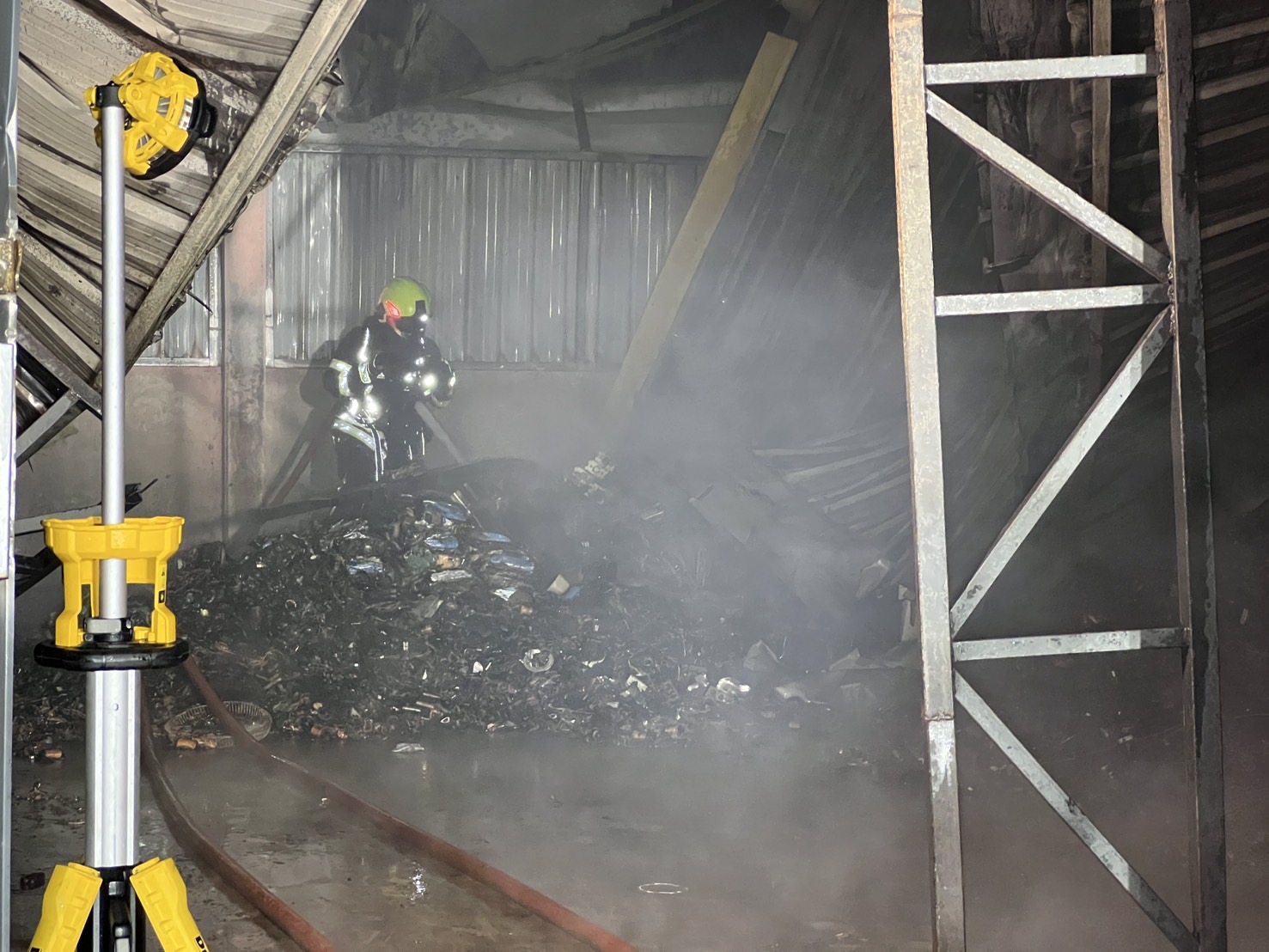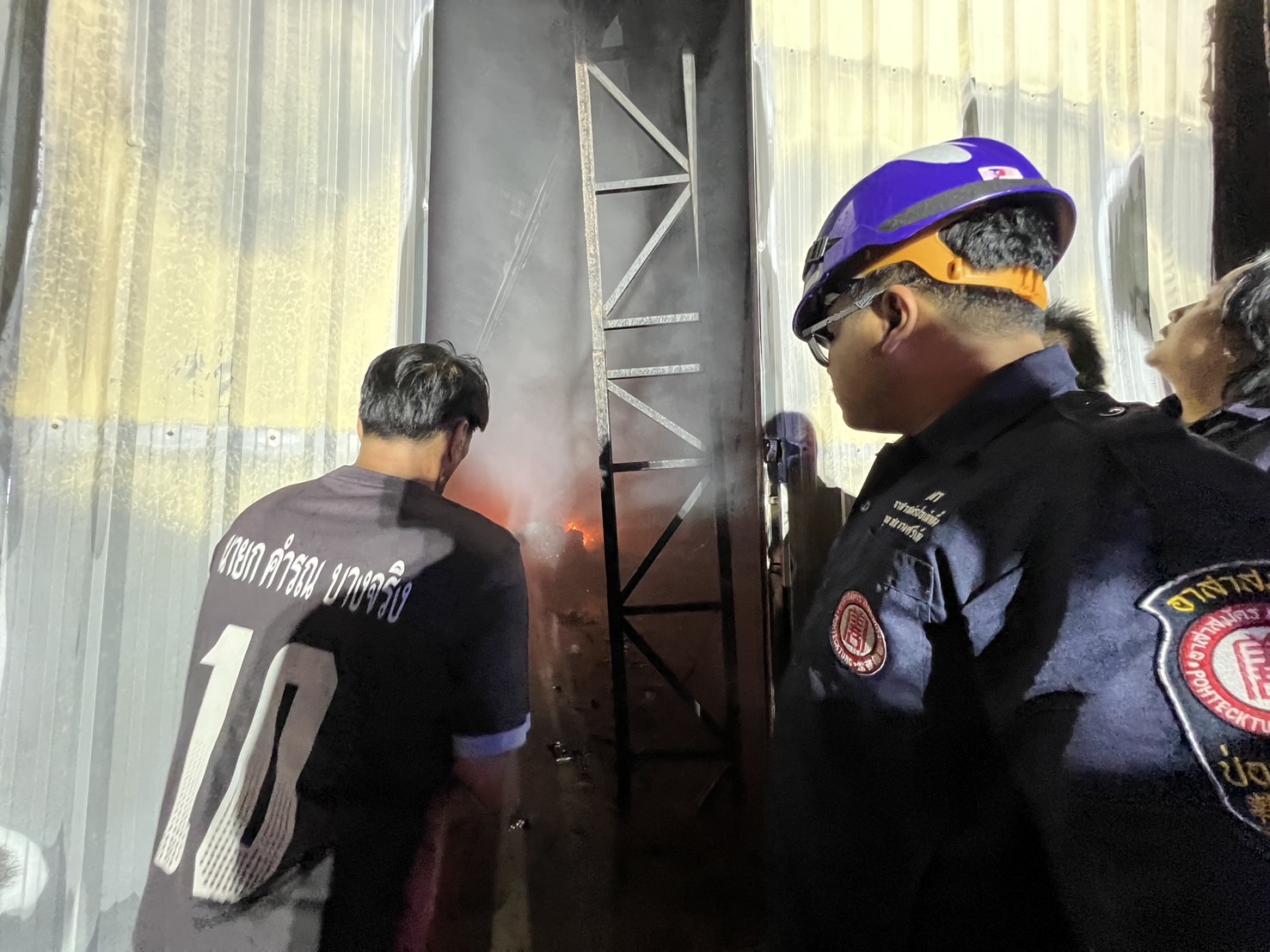 ที่เกิดเหตุเป็นโกดังเก็บสินค้าที่อยู่ติดกันจำนวน 8 โกดัง มี 1 โกดัง เกิดเพลิงกำลังลุกไหม้อยู่ด้านในโดยพบว่าถูกคล้องกุญแจล็อคไว้ ทางเจ้าหน้าที่กู้ภัยได้ใช้อุปกรณ์เครื่องตัดแม่กุญแจและทำการเปิดประตูออกโดยพบว่าแสงเพลิงนั้นกำลังลุกไหม้วัสดุสินค้าที่อยู่ด้านใน อีกทั้งพบหลังคาทรุดตัวถล่มลงมามาแล้ว เจ้าหน้าที่ดับเพลิงนำรถน้ำ 3 คัน เร่งใช้น้ำฉีดดับสกัดเพลิงไม่ให้ลุกลามไปยังโกดังใกล้เคียงโดยใช้เวลาประมาณ 30 นาที จึงสามารถควบคุมเพลิงได้ หลังเพลิงสงบลงพบว่าวัสดุที่ถูกไฟไหม้ทั้งหมดเป็นลักษณะแบตเตอรี่ลิเธียมก้อนและจำพวกไฟฉายจำนวนมาก ขณะนี้ทางเจ้าหน้าที่ตำรวจยังไม่ทราบสาเหตุที่เกิดขึ้นจะต้องให้ทางเจ้าหน้าที่กองพิสูจน์หลักฐานเข้ามาตรวจสอบหาสาเหตุอีกครั้ง