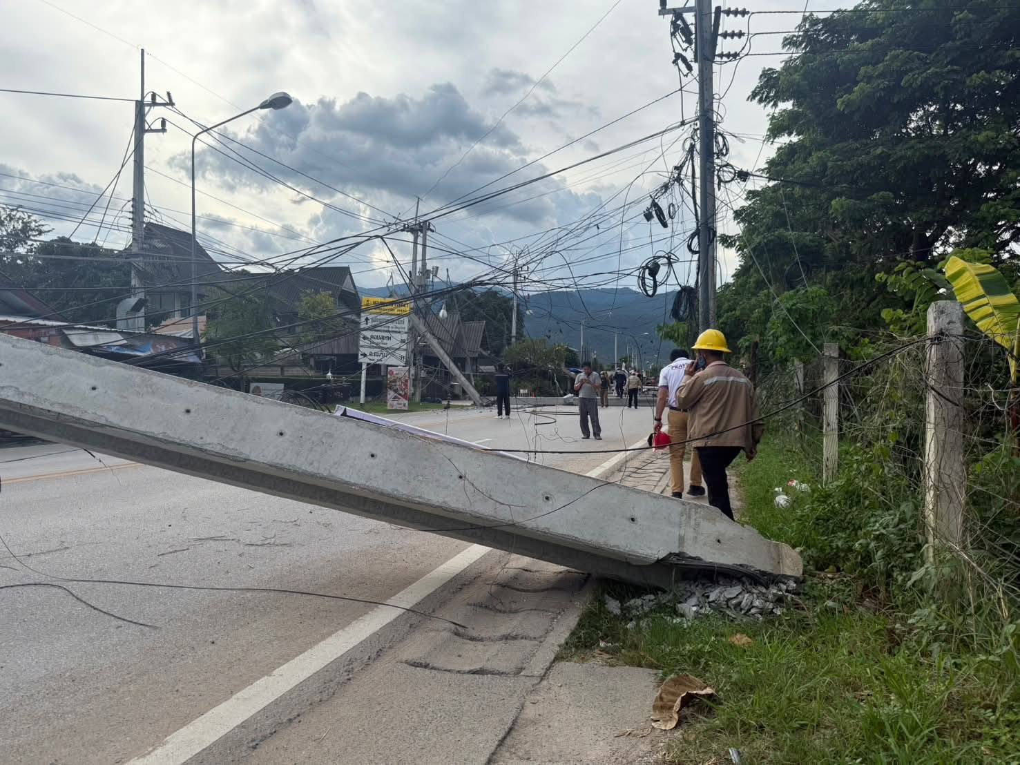 ปภ.เชียงใหม่ แจง กรณีรถกระบะส่งน้ำชนเสาไฟฟ้าล้ม, เสียหายรวม 52 ต้น จนท.เร่งแก้ไข คาดจ่ายไฟได้ครบ พรุ่งนี้