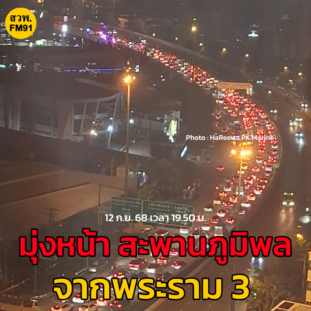 12 ก.ย. 68 เวลา 20.10 น. ถ.พระราม 3 มุ่งหน้า วงแหวนอุตสาหกรรม-สะพานภูมิพล 1 ติดยาว!