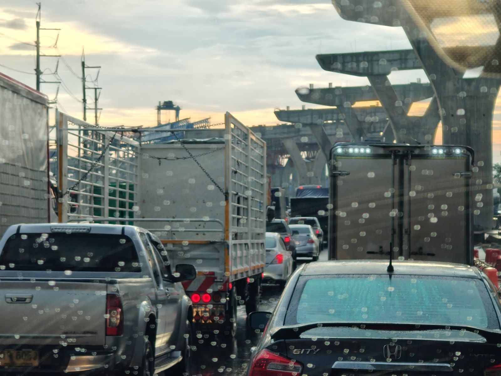 15 กันยายน 2568 เช้านี้ ถนนพระราม 2 ขาเข้า กทม. ช่องหลัก ลงสะพานข้ามแม่น้ำท่าจีน มีน้ำท่วมขัง และสภาพถนนชำรุด ส่งผลรถชะลอตัว ติดขัดตั้งแต่ก่อนขึ้นสะพานข้ามแม่น้ำ
