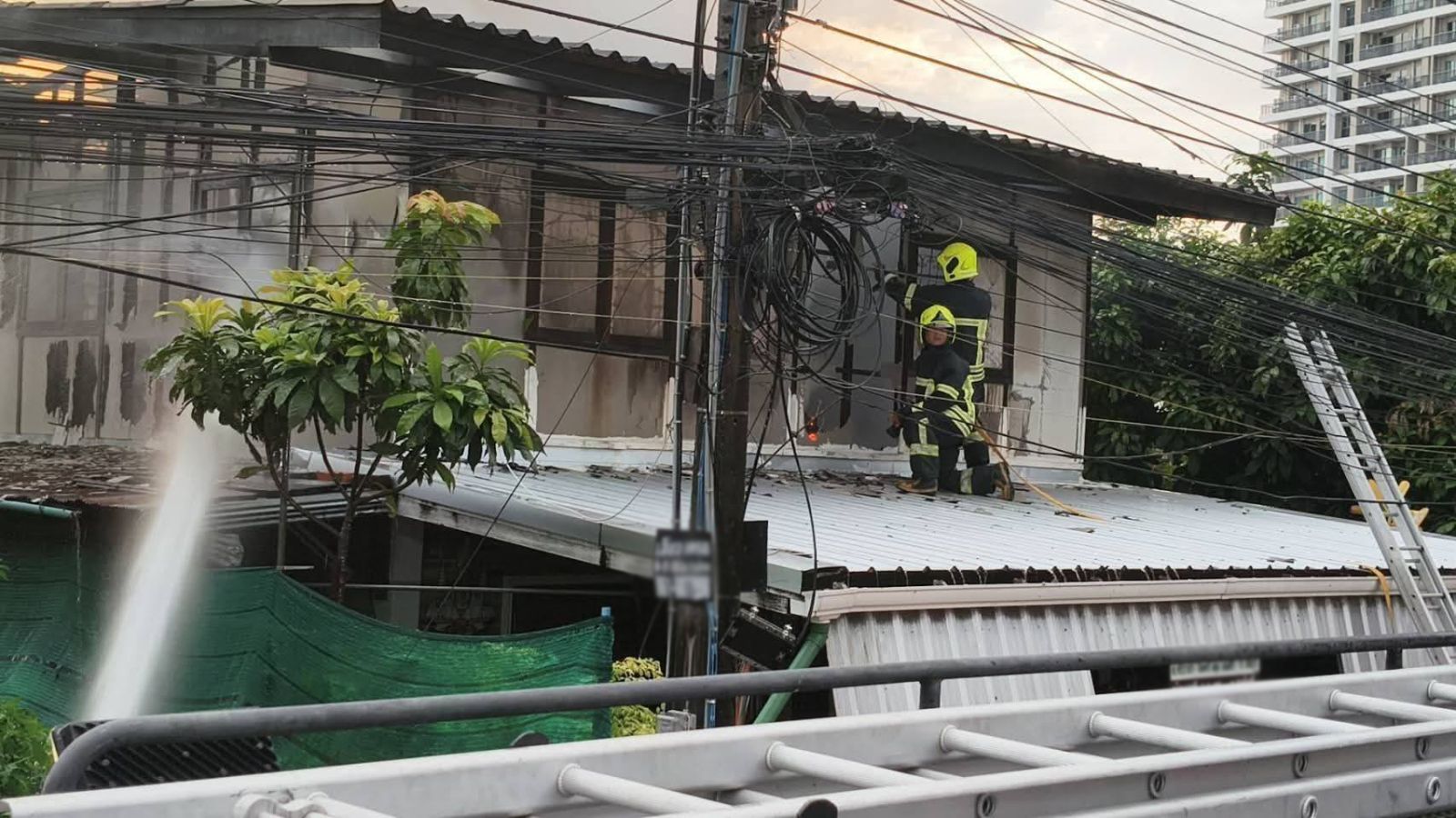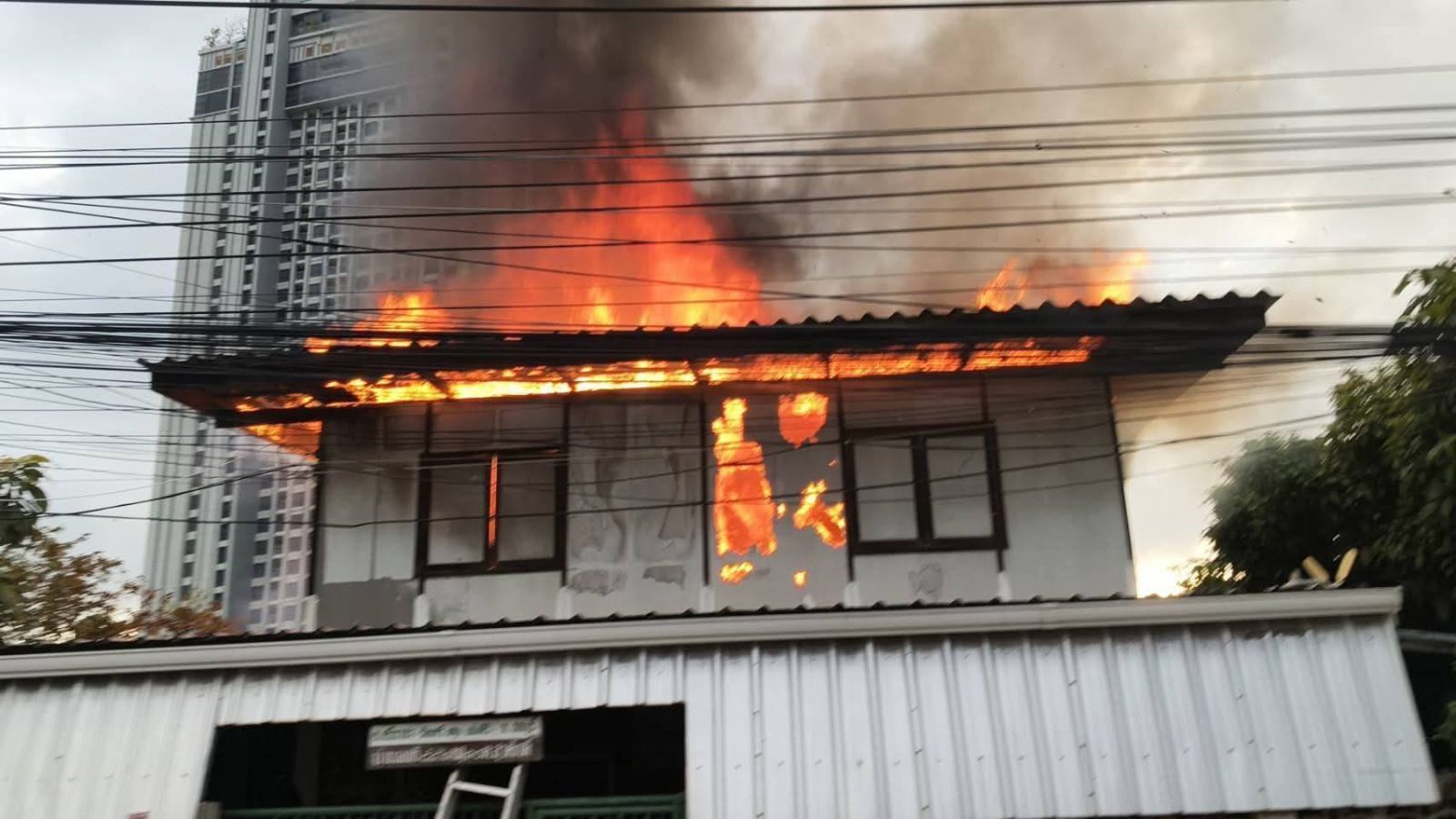 เพลิงไหม้บ้านเรือนประชาชน ชั้นบนเสียหายวอด พบเจ้าของบ้านจุดธูปขอพรบรรพบุรุษ ให้ญาติหายป่วย จ.ชลบุรี