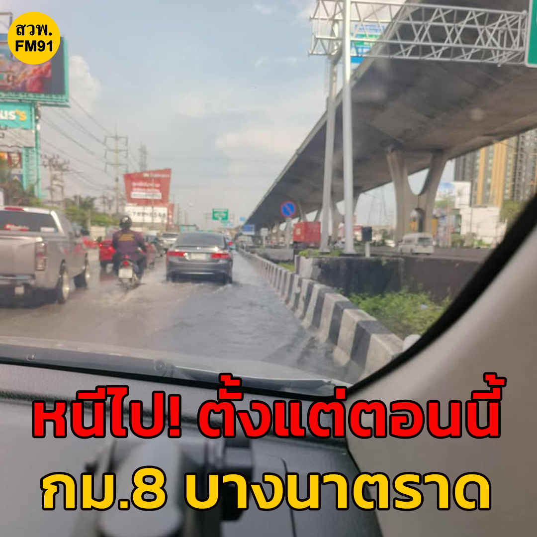 18 ก.ย. 68 เวลา 15.25 น. ถ.บางนาตราด ขาออก เชิงทางขึ้นสะพานกลับรถเมกา บางนา กม.8 มีน้ำท่วมขัง ท้ายสะสมกม. 5 กลับกัน ขาเข้า มีปัญหาขึ้นสะพานกลับรถกม. 7 ท้ายสะสม กม. 13