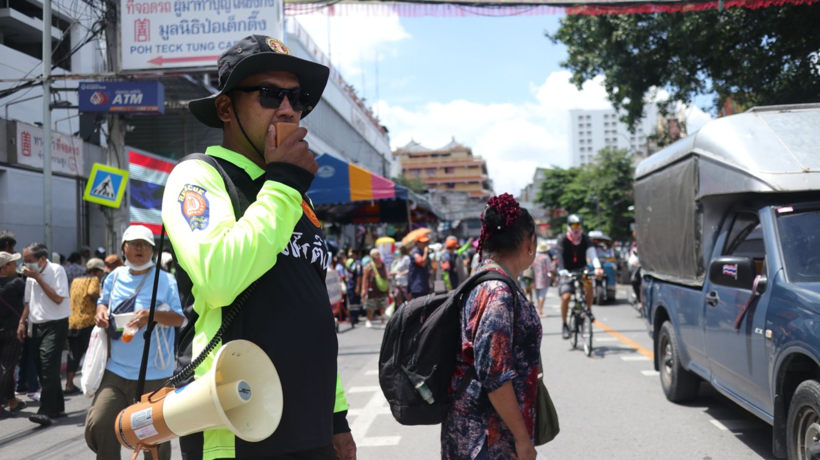 ขณะที่ตำรวจ สน.พลับพลาไชย 1 ประชาสัมพันธ์ กรณีดังกล่าวได้ปชส. การจัดการจราจรและอำนวยความสะดวกการจราจรประเพณีทิ้งกระจาด มูลนิธิป่อเต็กตึ๊ง ระหว่างวันที่ 18 - 19 ก.ย. 2568