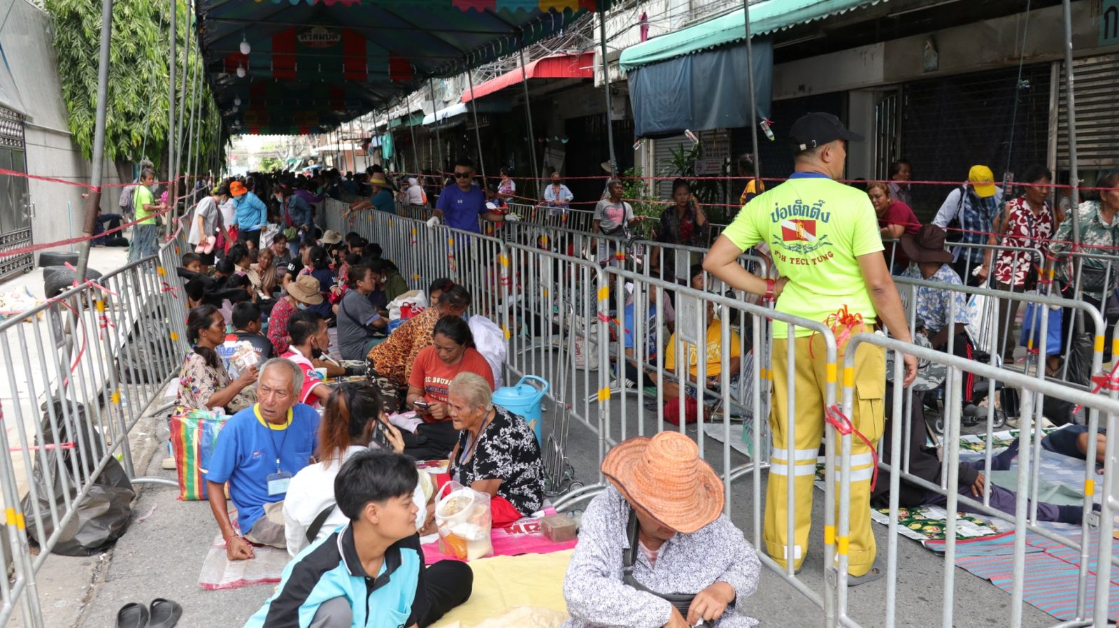 ภาพบรรยากาศ เที่ยงวันนี้ ปรากฏว่ามีพี่น้องปชช. มารอกันแล้ว โดยนั่งรออยู่ที่เต้นท์จากการสอบถามข้อมูลกับมูลนิธิฯ ช่วงเช้ามืดผู้คนจะยิ่งเยอะมากกว่านี้ จึงปชส.ไปยังประชาชนทั่วไปที่ใช้เส้นทางใกล้กับมูลนิธิฯ อาจไม่ได้รับความสะดวก ต้องขออภัยไว้ ณ ที่นี้ด้วย