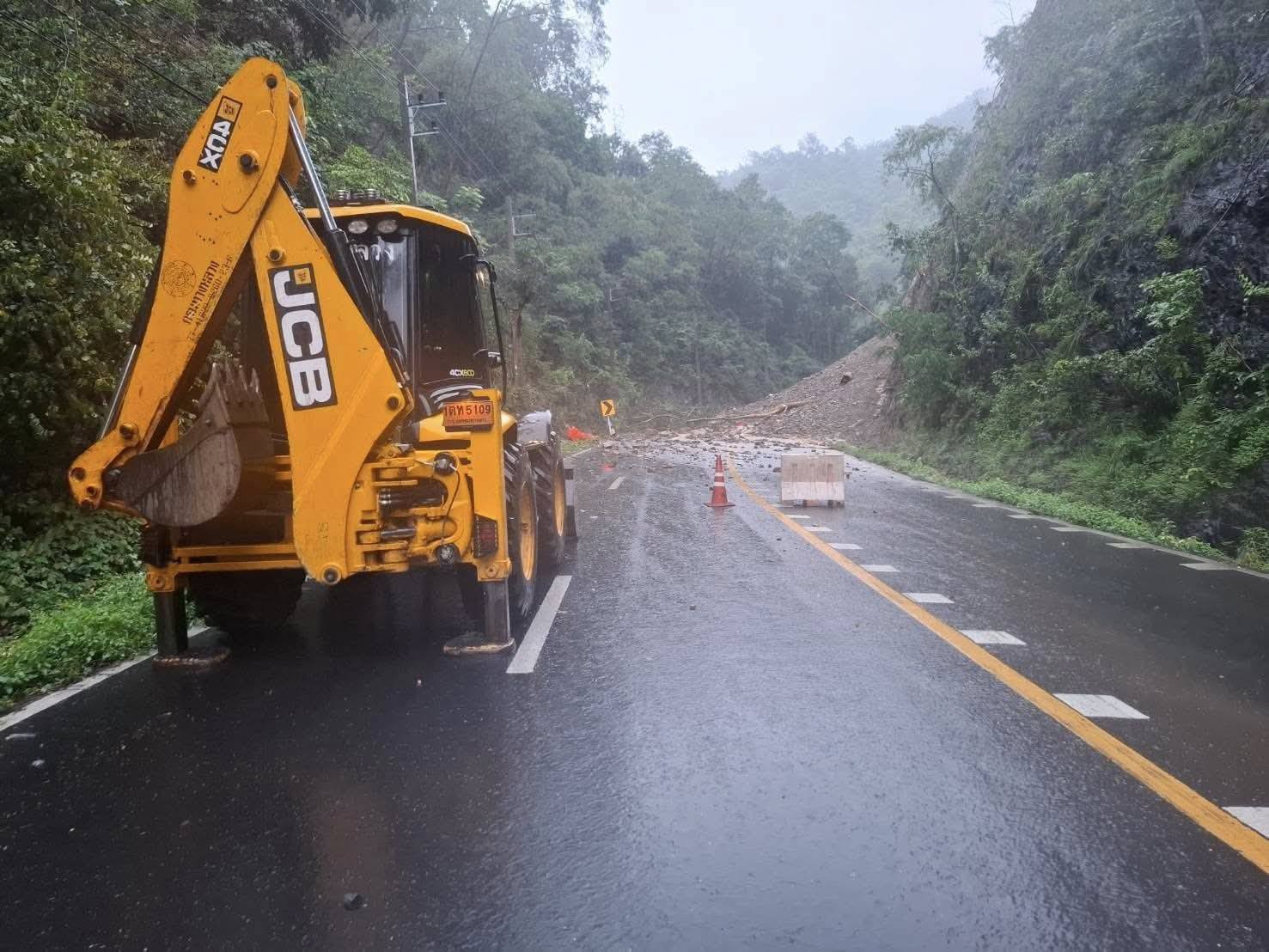 19 ก.ย.68 เวลา 06.30 น. อัปเดตสถานการณ์ ยังมีฝนตกหนัก ทำให้ดินสไลด์และหินร่วงทับผิวทาง ทล.12 (หล่มสัก - ชุมแพ) ช่วงเลยสะพานห้วยตอง ไป 1 กม. รถทุกชนิดไม่สามารถผ่านได้ เจ้าหน้าที่แขวงฯ ดำเนินการปิดการจราจร ทั้ง 2 ทิศทาง