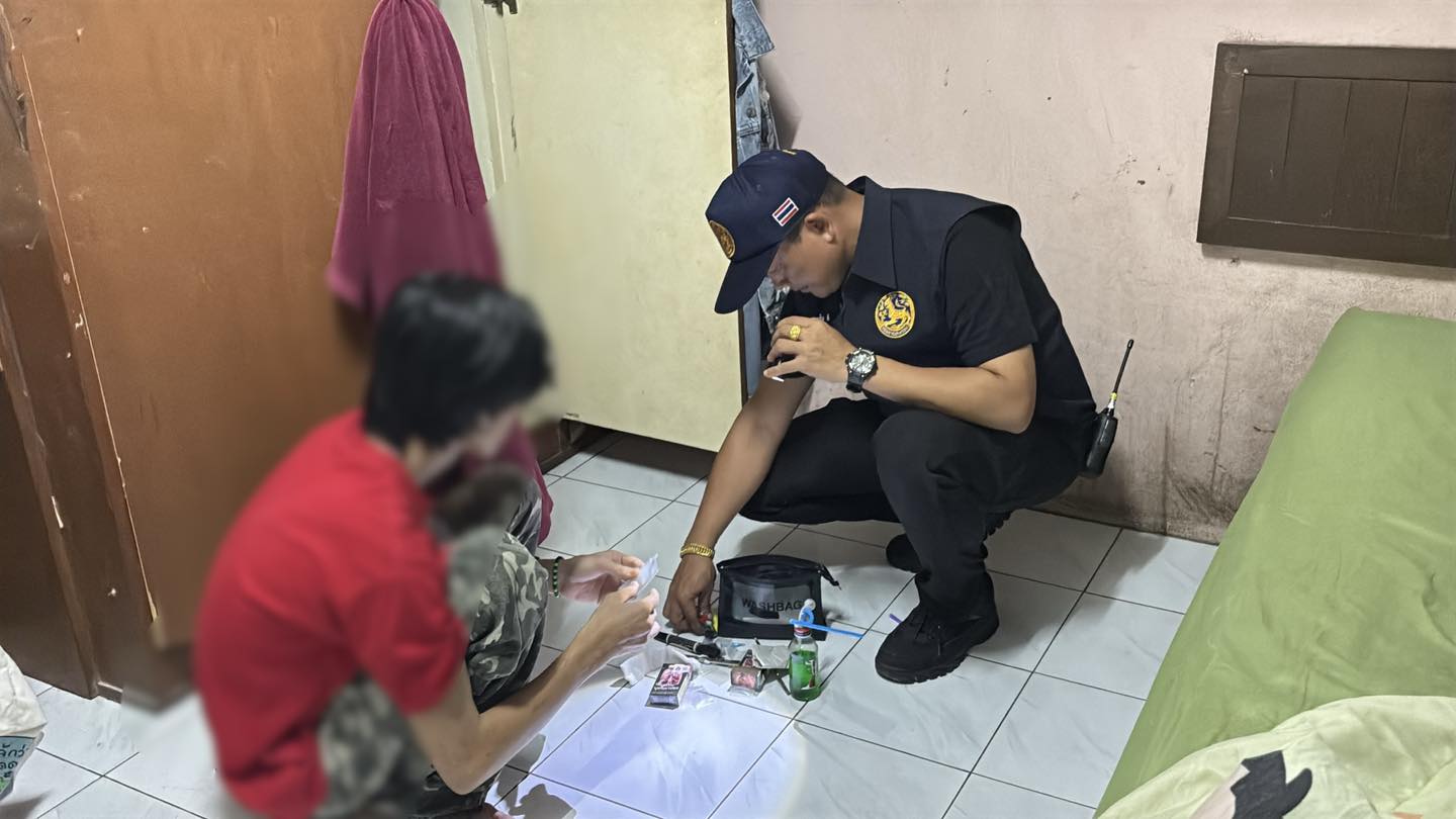 (20 ก.ย.68) เจ้าหน้าที่ฝ่ายปกครอง อ.บางละมุง ร่วมกับเจ้าหน้าที่ตำรวจ สภ.เมืองพัทยา ได้รับแจ้งว่า มีการมั่วสุมเสพยาเสพติดและจำหน่ายยาเสพติดภายในตึกห้องพักรายวันแห่งหนึ่ง ย่านพัทยาใต้ ตำบลหนองปรือ อำเภอบางละมุง จังหวัดชลบุรี จึงสนธิกำลังเข้าทำการตรวจสอบ