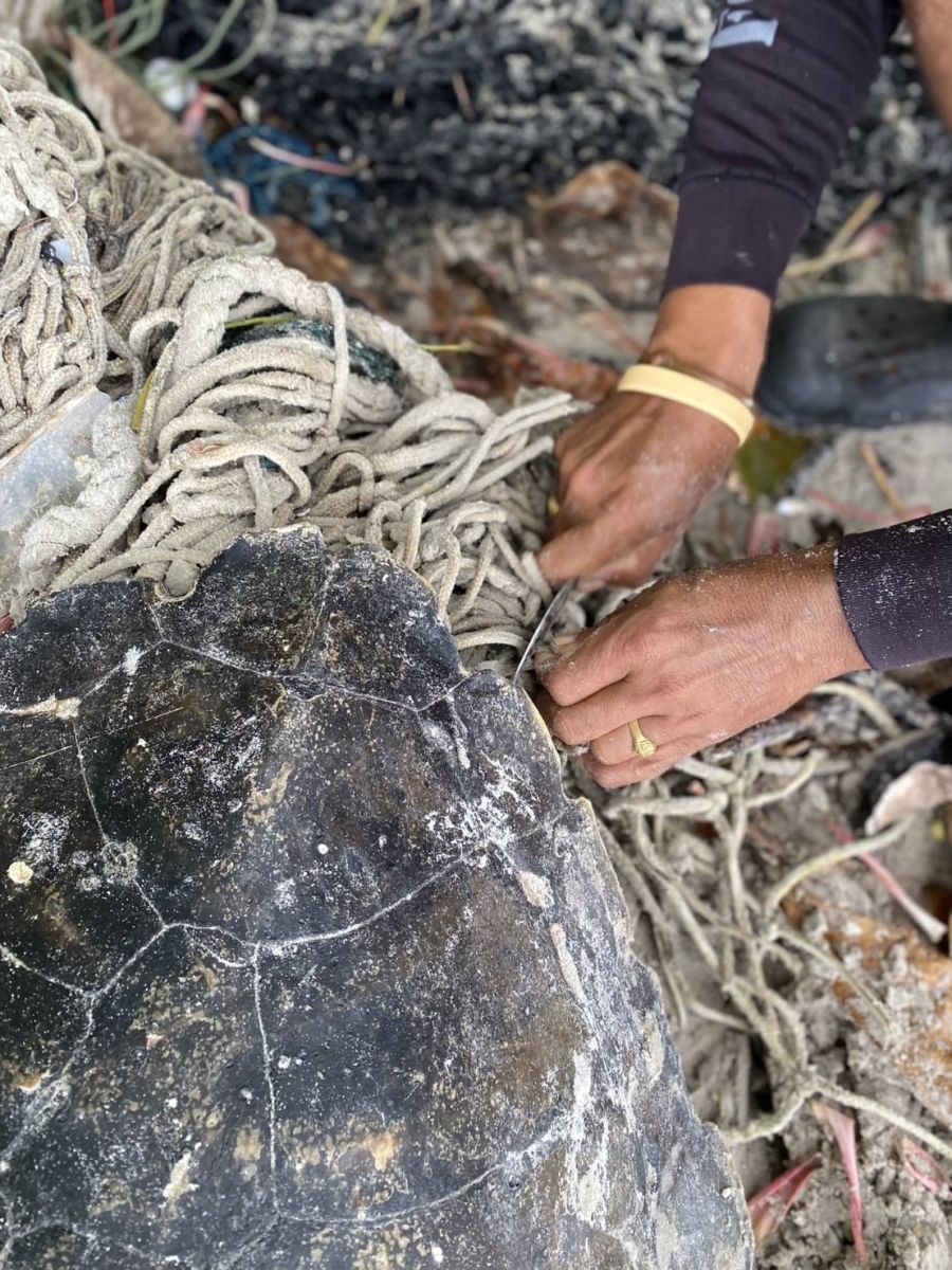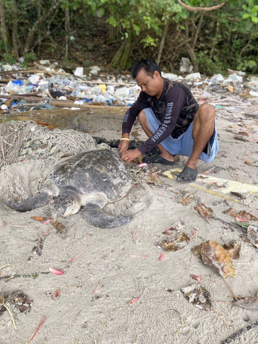 นายสุพล คำเสนาะ หัวหน้าอุทยานแห่งชาติตะรุเตา เปิดเผยว่า เหตุการณ์ดังกล่าวเกิดขึ้นเมื่อวันที่ 18 กันยายน 2568 เวลาประมาณ 16.54 น. เจ้าหน้าที่ได้ลาดตระเวนและพบเต่ากระขนาดความยาวลำตัวประมาณ 70 เซนติเมตร กว้าง 65 เซนติเมตร ถูกเศษเชือกพันติดตัวอยู่ โชคดีที่เต่ายังคงมีชีวิตและไม่ได้รับบาดเจ็บรุนแรง เจ้าหน้าที่จึงได้เข้าดำเนินการช่วยเหลืออย่างเร่งด่วน โดยตัดเศษเชือกที่พันตัวออกจนหมด และตรวจสอบความพร้อมก่อนปล่อยคืนสู่ธรรมชาติในทันที