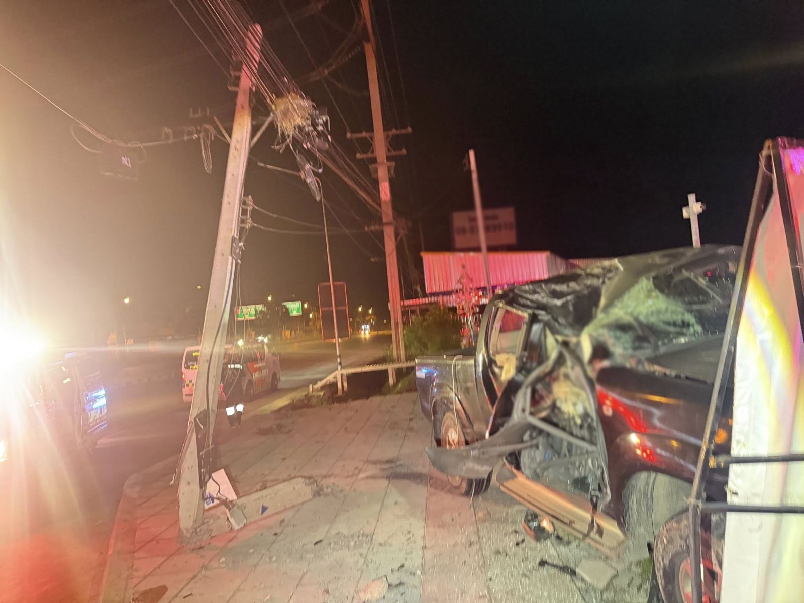 รถกระบะเสียหลักชนเสาไฟฟ้าข้างทาง คนขับเสียชีวิตในซากรถ ถนนหมายเลข 346 ก่อนถึงสะพานปทุมธานี 1