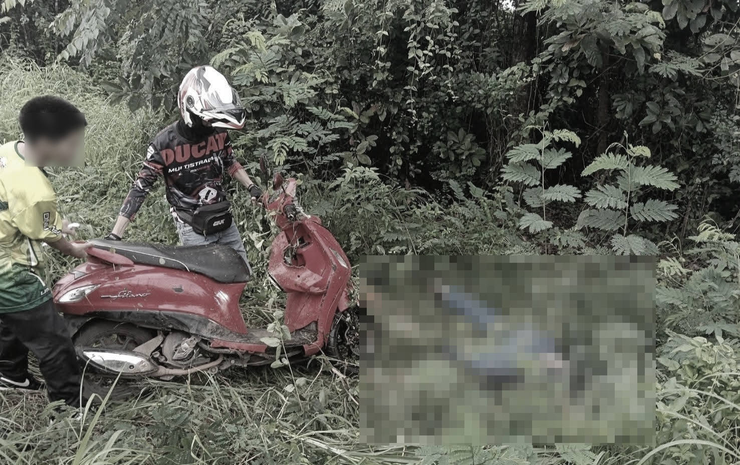 เมื่อไปถึงที่เกิดเหตุ พบรถจักรยานยนต์ยามาฮ่า ฟีลาโน่ สีแดง ทะเบียน จ.ลำปาง ล้มอยู่ในพงหญ้าริมถนน และพบร่างชายเสียชีวิตนอนคว่ำหน้าอยู่ข้างรถ ตรวจสอบในตัวพบเอกสารบัตร เป็นชายไทย อายุ 17 ปี นักศึกษาชั้น ปวช. สาขาเครื่องมือกล วิทยาลัยเทคนิคแห่งหนึ่งในพื้นที่ จ.ลำปาง